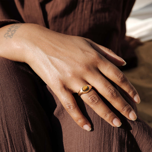 Raffinate incisioni e scintillanti pezzi in Occhio di Tigre: con la nostra collezione Golden Glow puoi dare al tuo look autunnale il tocco finale.