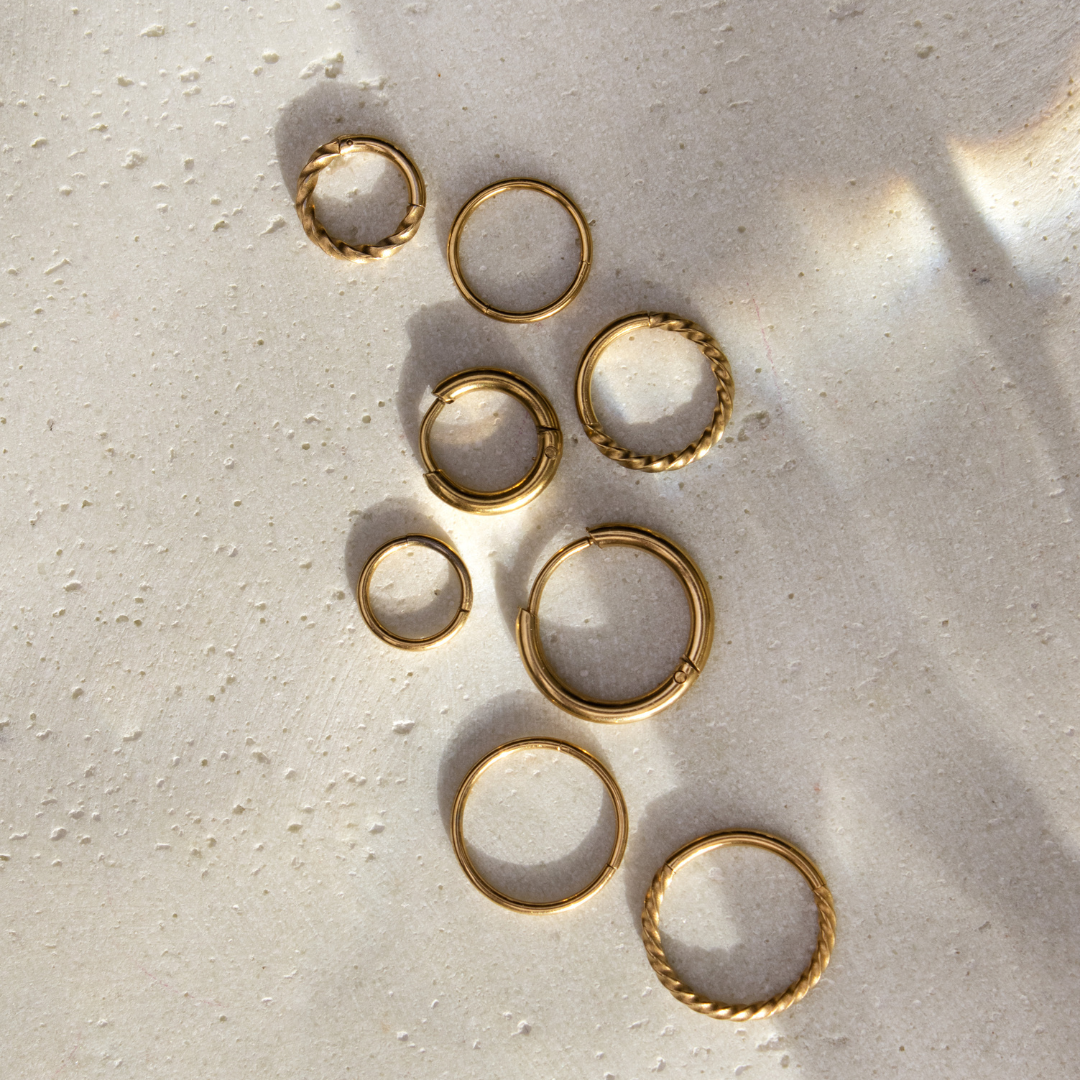 Un piercing all'orecchio con un diametro interno di 6 mm è particolarmente adatto per piccoli lobi o piercing al trago. 8 mm è ideale per piercing all'elice o alla parte superiore dell'orecchio. Con 10 mm, si ha più libertà di movimento, il che è particolarmente vantaggioso per piercing al setto nasale o alla narice.