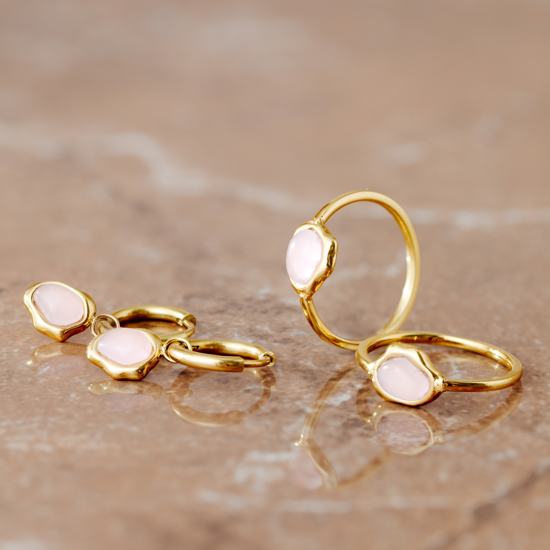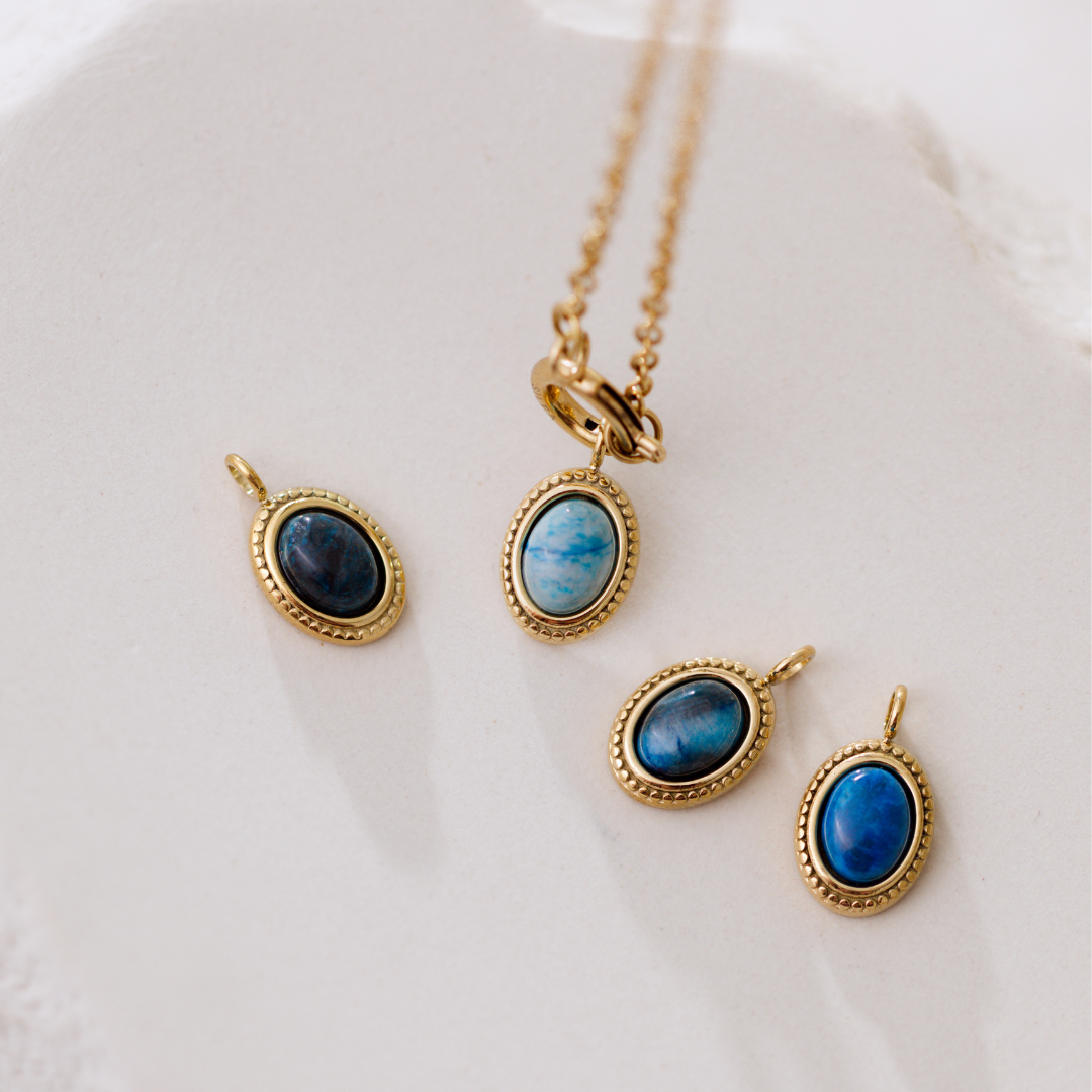 In Kombination mit 14 Karat vergoldetem Edelstahl entstehen so Schmuckstücke, die leicht, langlebig und tragbar sind. Die Steine werden so eingesetzt, dass sie das Design unterstreichen, ohne zu dominant zu wirken, und auf unterschiedliche Stile, Farben und Looks abgestimmt werden können.
