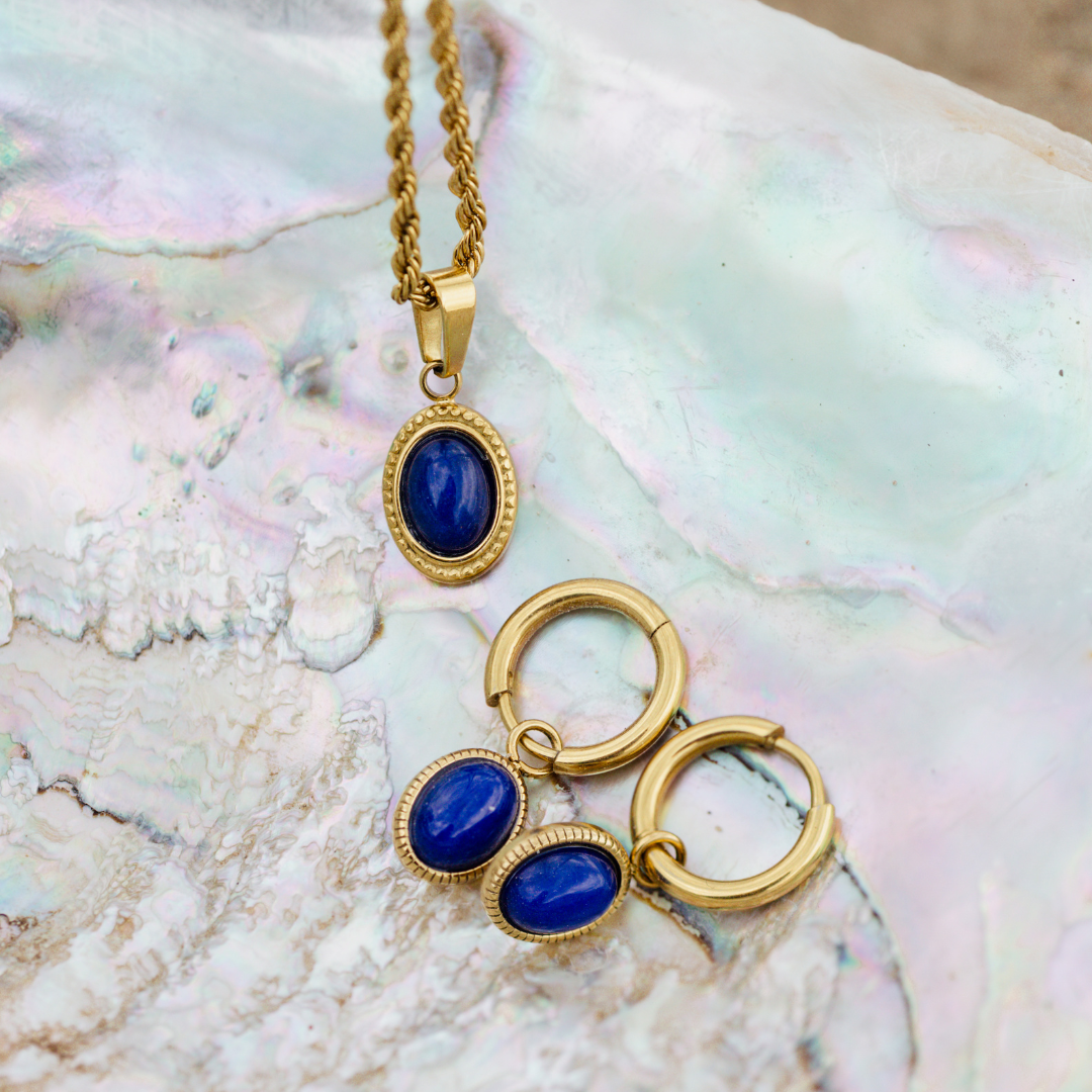 - Blau steht für Ruhe und Schutz (Saphir, Lapislazuli)