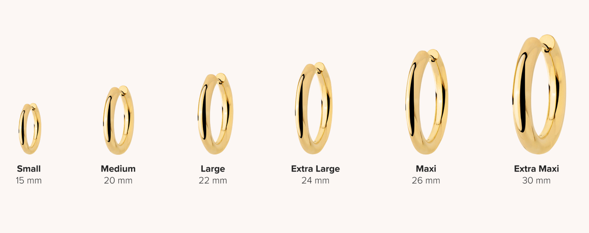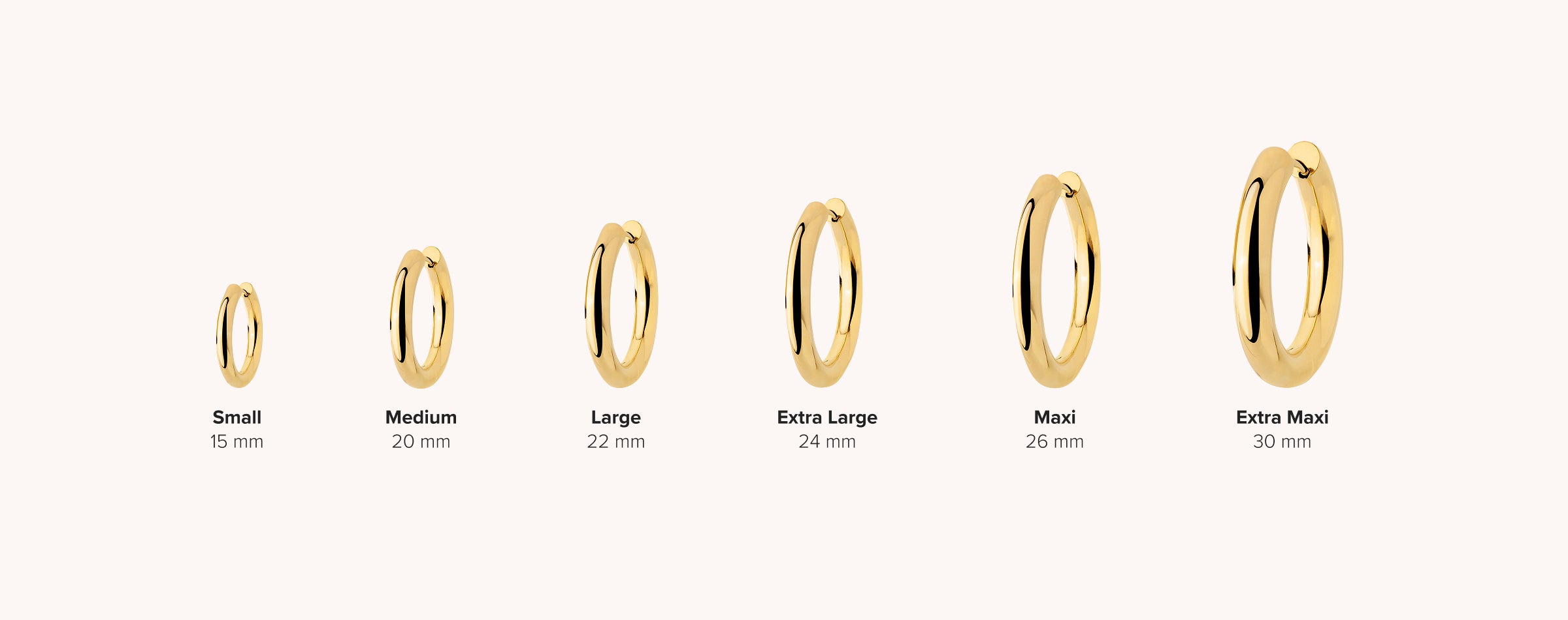 Le diverse dimensioni dei nostri cerchi consentono di creare look e opzioni di indosso differenti: