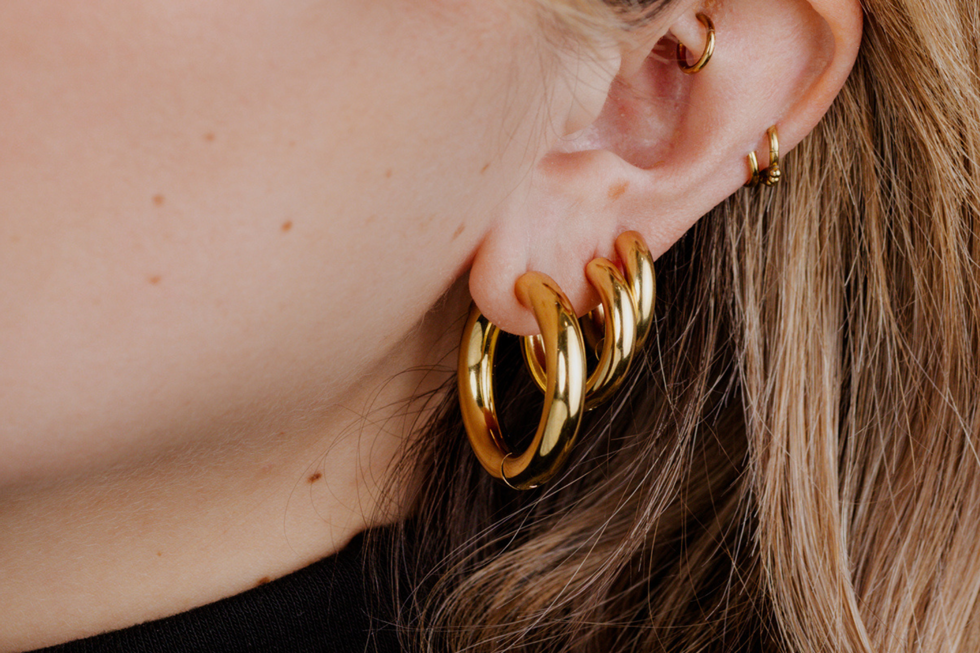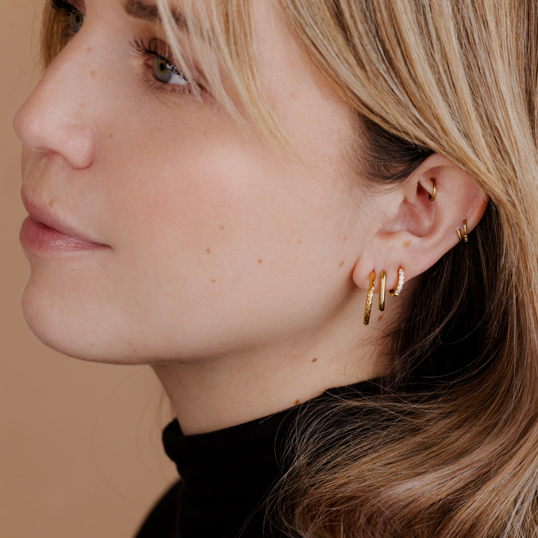 Il nostro consiglio: se non sei sicura, inizia con orecchini a cerchio più piccoli: sono versatili e possono essere abbinati in modo chic o casual a seconda dell'outfit.