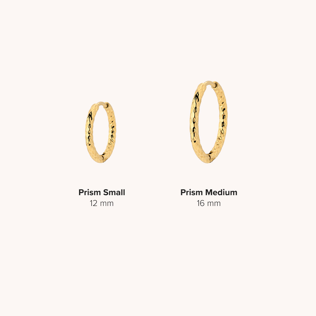 Se cerchi orecchini a cerchio che non siano solo brillanti, ma che presentino anche dettagli speciali , gli orecchini a cerchio con taglio prismatico sono la scelta giusta. La raffinata struttura superficiale crea un gioco di luce unico che fa brillare gli orecchini a ogni movimento.