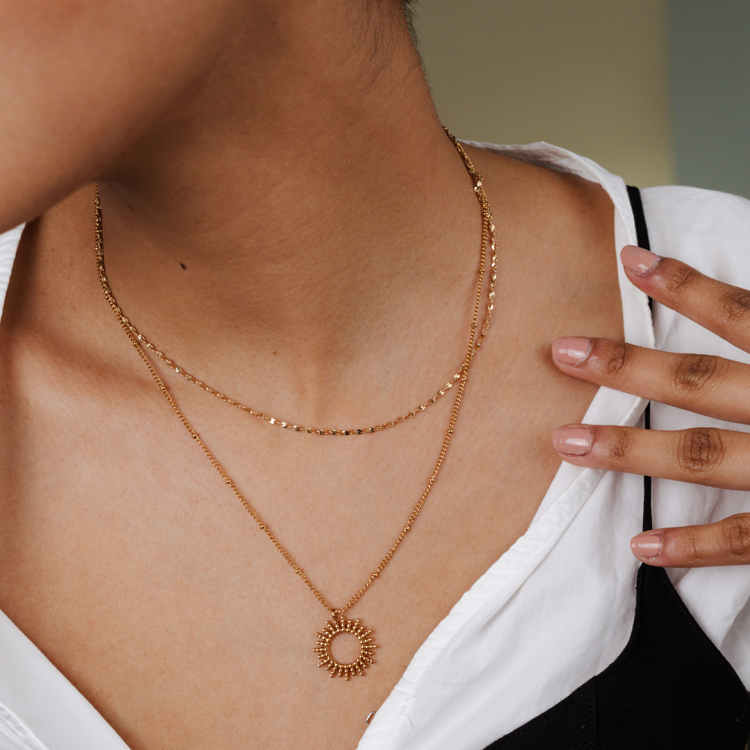 Um die Vergoldung zu schützen, bewahrst du dein Schmuckstück am besten trocken auf, getrennt von anderen Metallen. Nach dem Tragen genügt es, den Schmuck mit einem weichen Tuch abzuwischen. Bei LUAMAYA besteht kein Risiko, dass dein Schmuck anläuft oder abfärbt – unsere 14K Vergoldung auf Edelstahl ist besonders beständig.