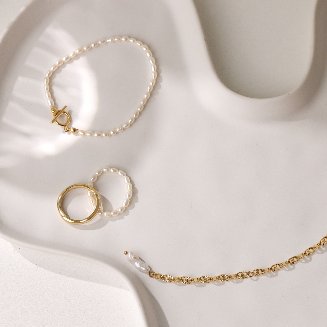 Le perle non devono per forza avere un aspetto "festoso". Piccoli orecchini di perle o un delicato bracciale di perle di Luamaya aggiungono un tocco di sobria eleganza ai look quotidiani. Sono perfetti per: