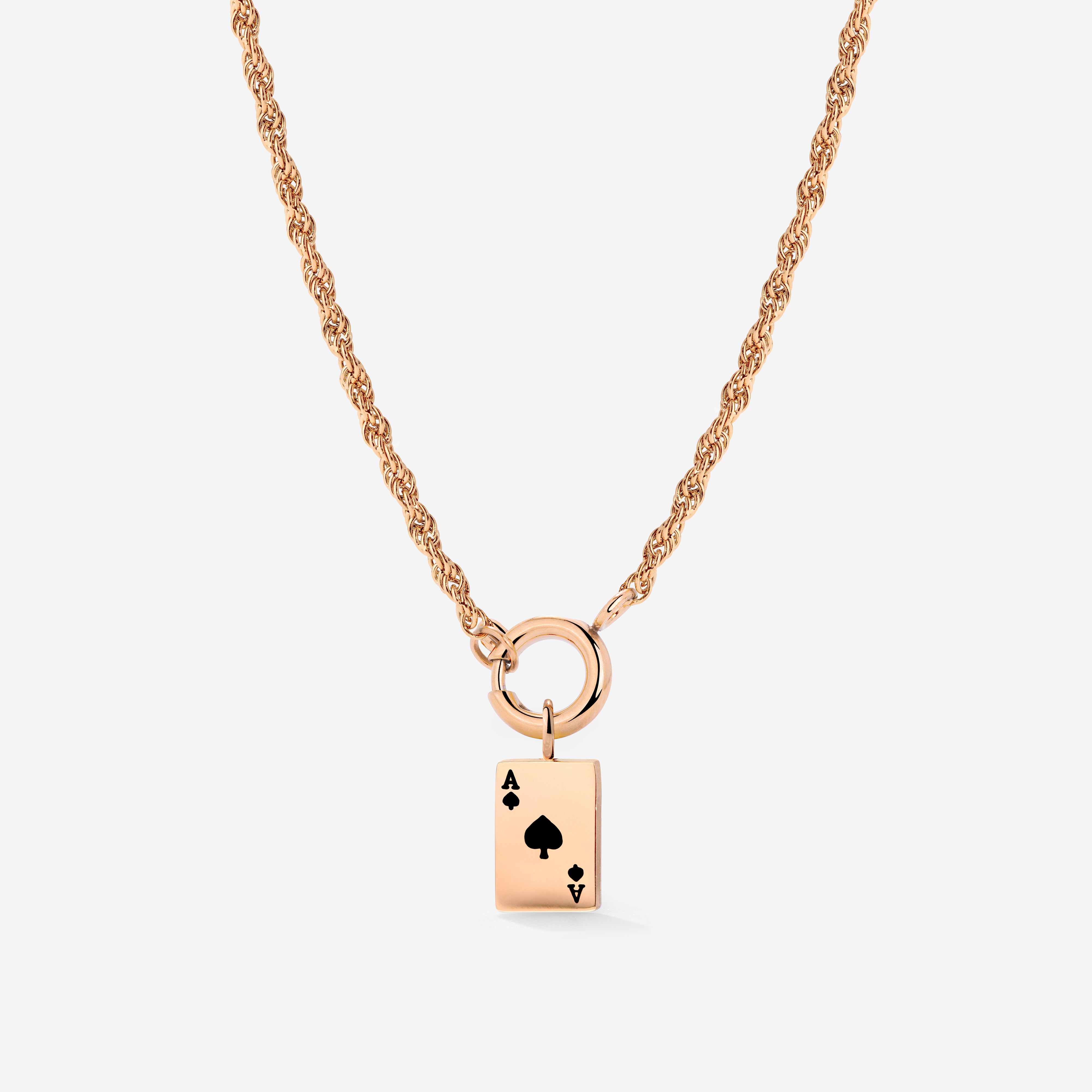 In vielen Kulturen steht die Pik-Ass Spielkarte schon seit Jahrhunderten für Glück und Reichtum und unser “Aced” Rope Chain Necklace Set ist der perfekte kleine Glücksbringer! Trage den süßen Ass-Charm mit der schmalen, getwisteten Halskette immer und überall und lass dich stets daran erinnern, dass deine nächste Portion Glück gar nicht weit entfernt ist. Du hast auch einen Lieblingsmenschen, dem du alles Glück der Welt wünschst? Dann verschenk dieses süße Schmuckstück als Symbol deiner Wertschätzung damit ihr beide immer ein Stück Glück griffbereit habt!