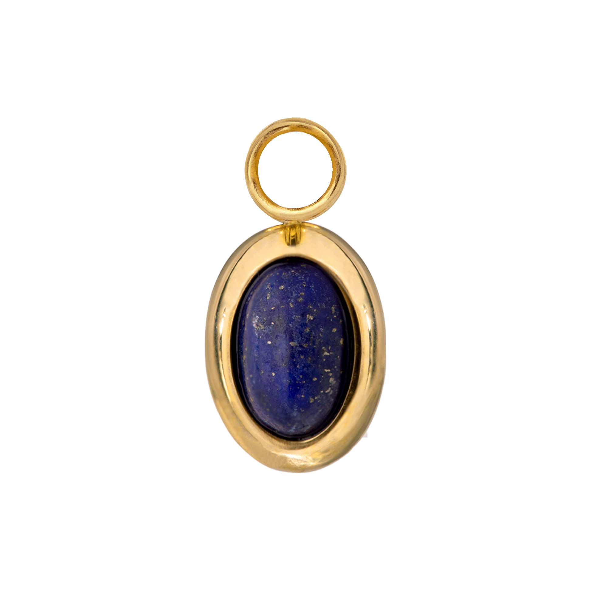 Per completare la collana, offriamo anche il pendente in lazurite in forma ovale come orecchino. Con il nostro set di cerchi ovali 'Blue Breeze' nella taglia Baby, il tuo look estivo sarà completo. Il blu intenso del lazurite è l'eye-catcher perfetto per coloro che amano indossare un tocco di colore senza rinunciare del tutto a un'atmosfera senza tempo e classica.