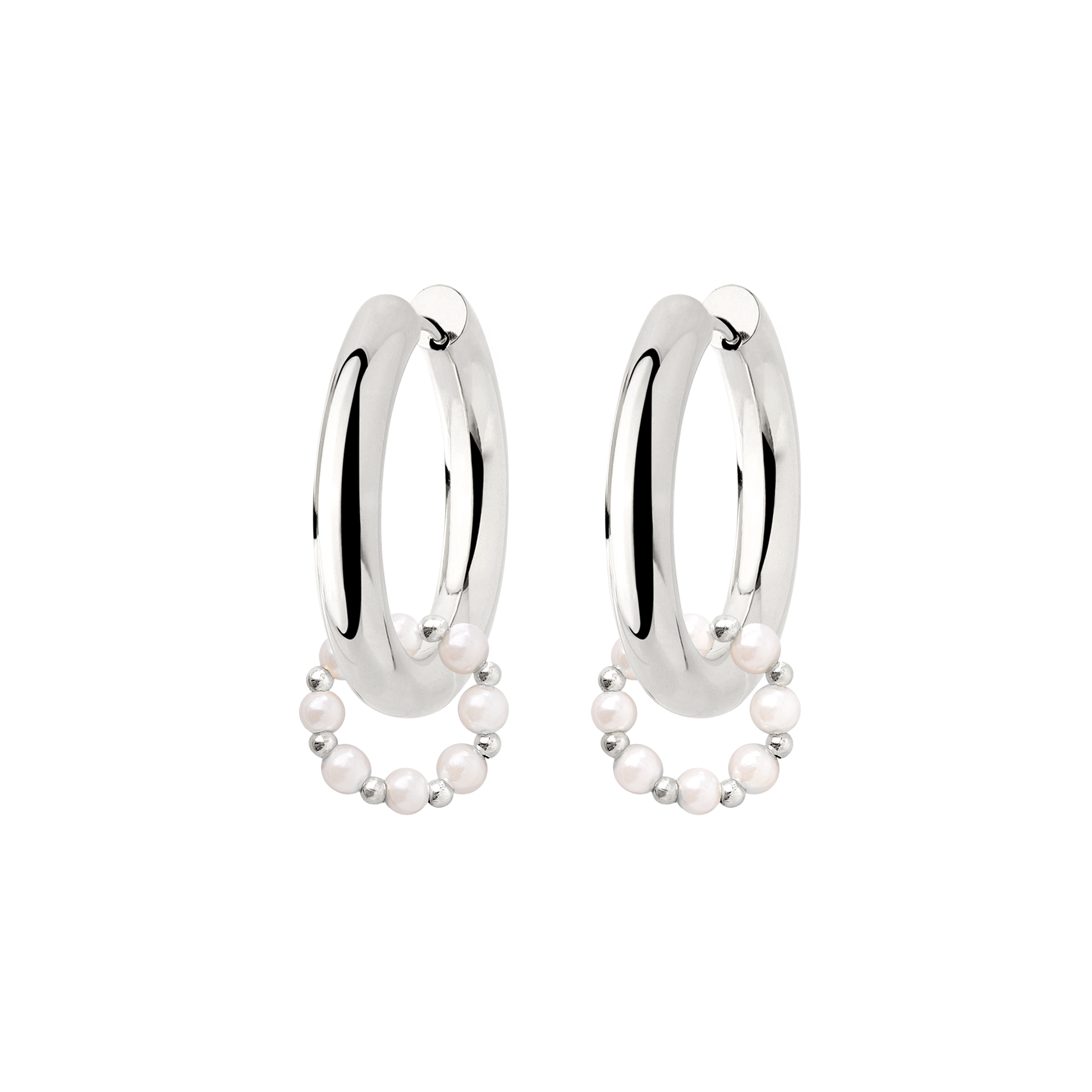 Chunky Pearl 'n' Beads Hoop Set Medium Argento