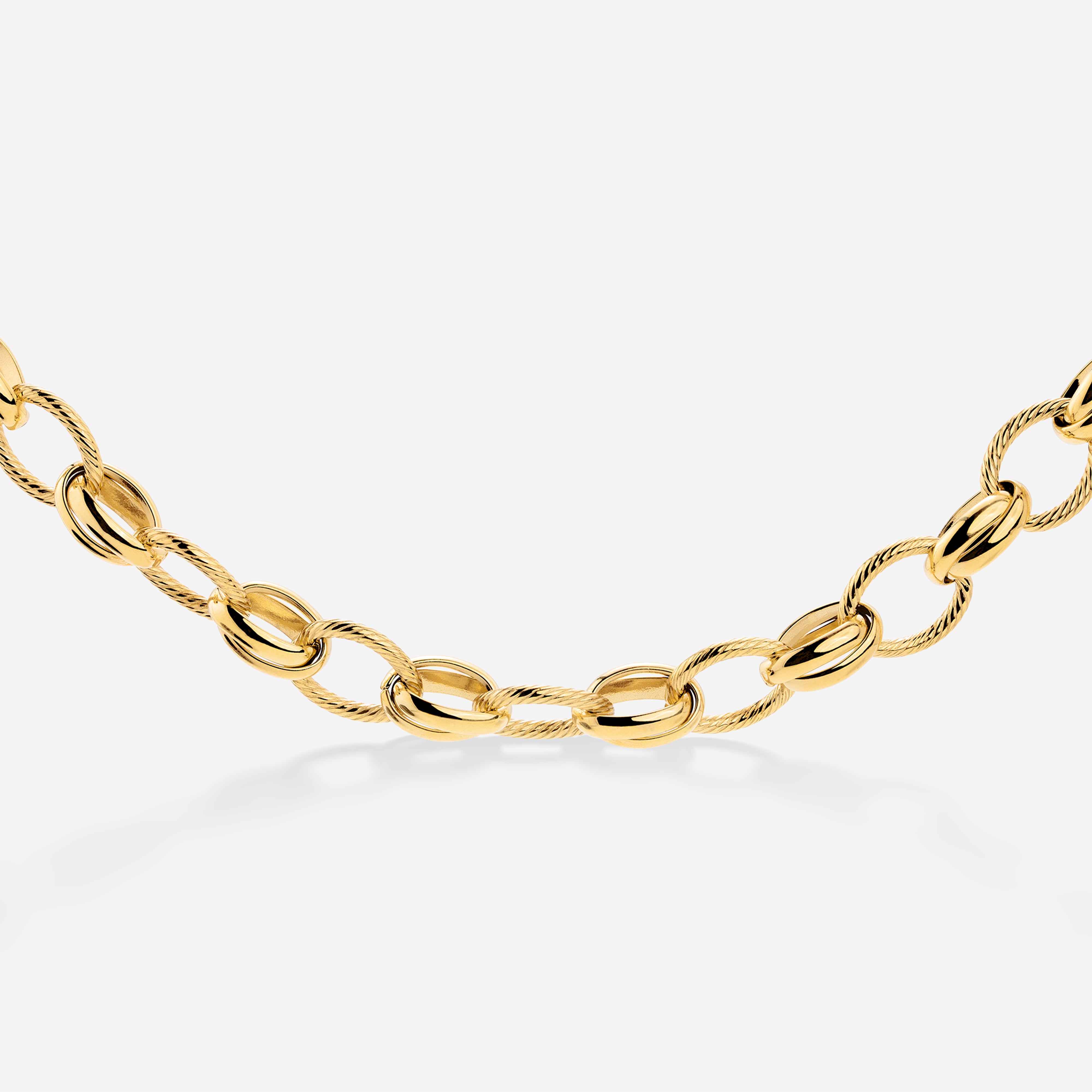 Con la nostra collana 'Chunky Twisted Links', le cose diventano davvero selvagge e emozionanti! Non perderti questo colpo d'occhio e indossalo come pezzo forte con il tuo prossimo outfit. Questa collana è composta da anelli di catena intrecciati e agganciati, che si alternano creando un look unico e speciale. Chunky e audace sono le parole d'ordine qui, e noi non ne abbiamo mai abbastanza!
