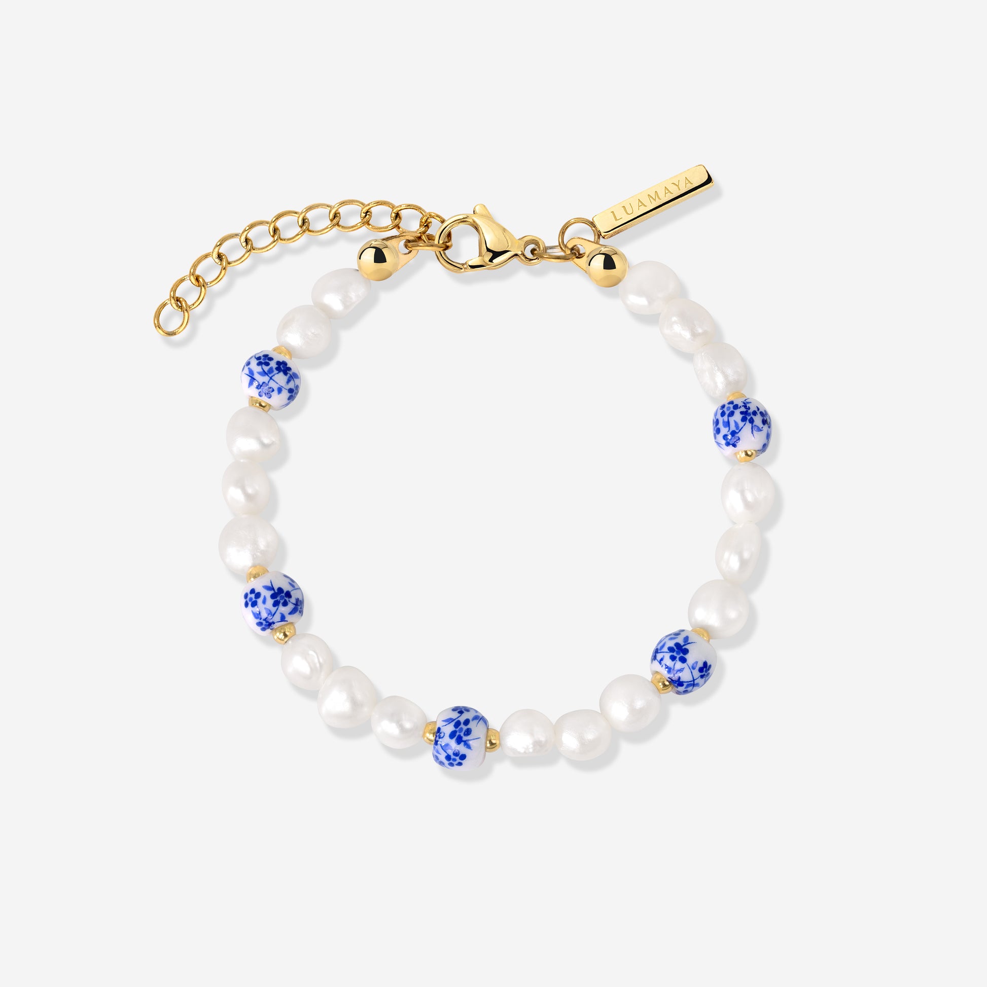 Le perle d'acqua dolce sono assolutamente indispensabili, soprattutto in estate, e con il nostro braccialetto "Flower Tile Pearl", hai il mix perfetto di base e unico. Le perle blu con motivo floreale, che sono tra i punti salienti della collezione, conferiscono a questo braccialetto quel qualcosa in più e rendono sicuramente il tuo polso in evidenza - che tu sia in spiaggia o in città.
