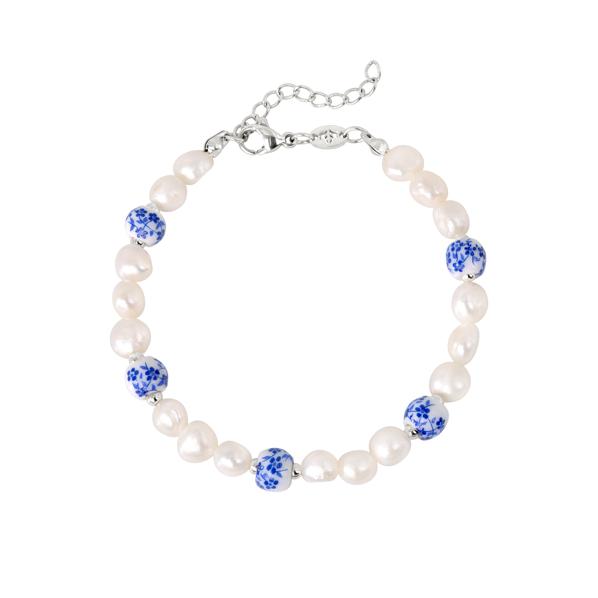 Le perle d'acqua dolce sono assolutamente indispensabili, soprattutto in estate, e con il nostro braccialetto "Flower Tile Pearl", hai il mix perfetto di base e unico. Le perle blu con motivo floreale, che sono tra i punti salienti della collezione, conferiscono a questo braccialetto quel qualcosa in più e rendono sicuramente il tuo polso in evidenza - che tu sia in spiaggia o in città.