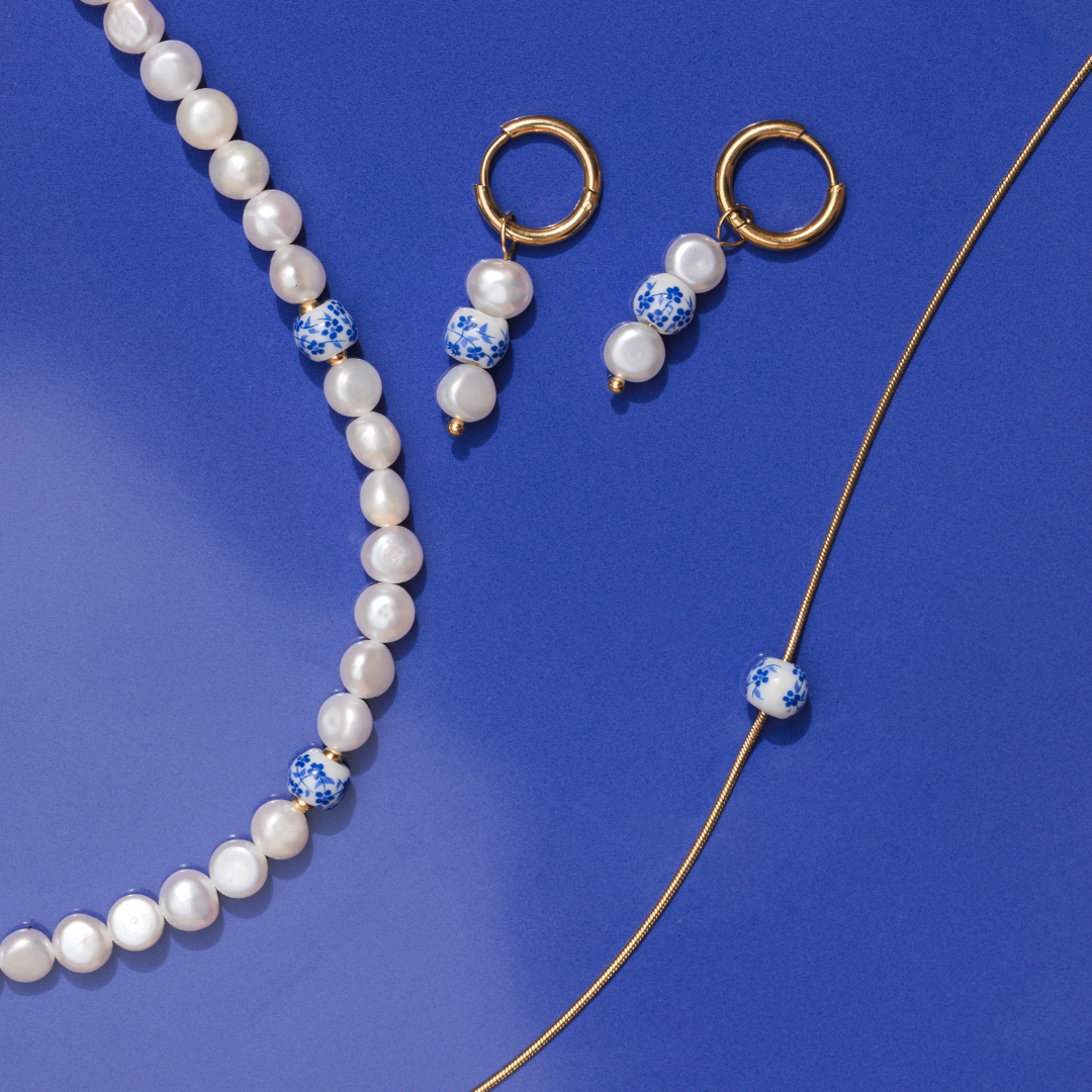Se ami lo stile minimalista ma vuoi comunque qualcosa di speciale per il tuo outfit, allora la nostra collana "Flower Tile" è perfetta per te! La delicata perla con motivo floreale blu cattura la leggerezza e la bellezza dell'estate, mentre la catena sottile emana un fascino senza tempo. Perfetta per ogni occasione, dai giorni estivi casual alle serate eleganti - vai a prenderla!