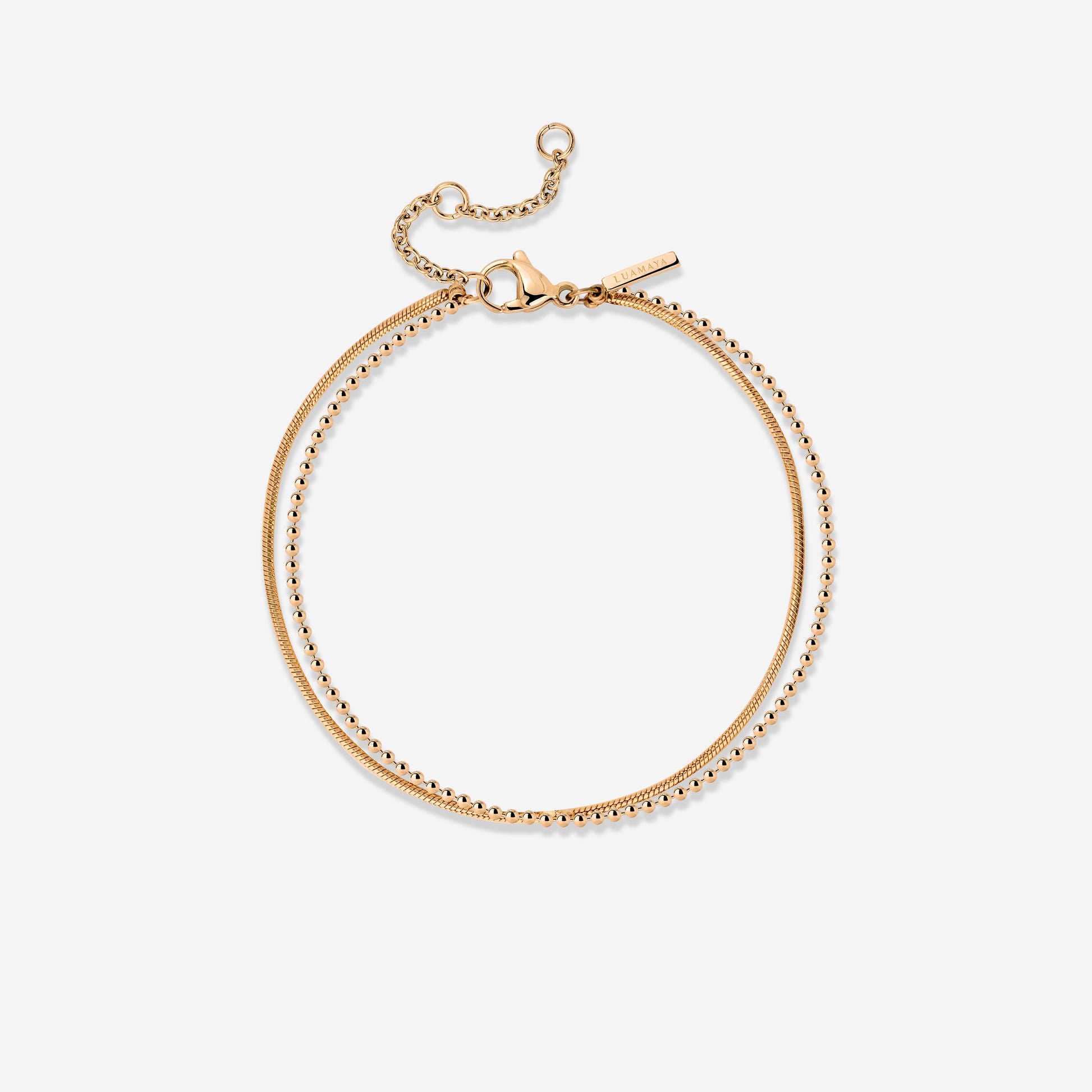 Elegante e giocoso — proprio come te e il nostro bracciale “Duo Beads”, un abbinamento perfetto! La particolarità di questo bracciale sono le due catene diverse, sovrapposte per creare un gioiello unico. Mentre la catena snake aggiunge un tocco di eleganza e raffinatezza, quella con perline dona un’aria più dolce e divertente. Provalo subito e indossalo da solo oppure abbinalo alla nostra collana coordinata “Duo Beads”!
