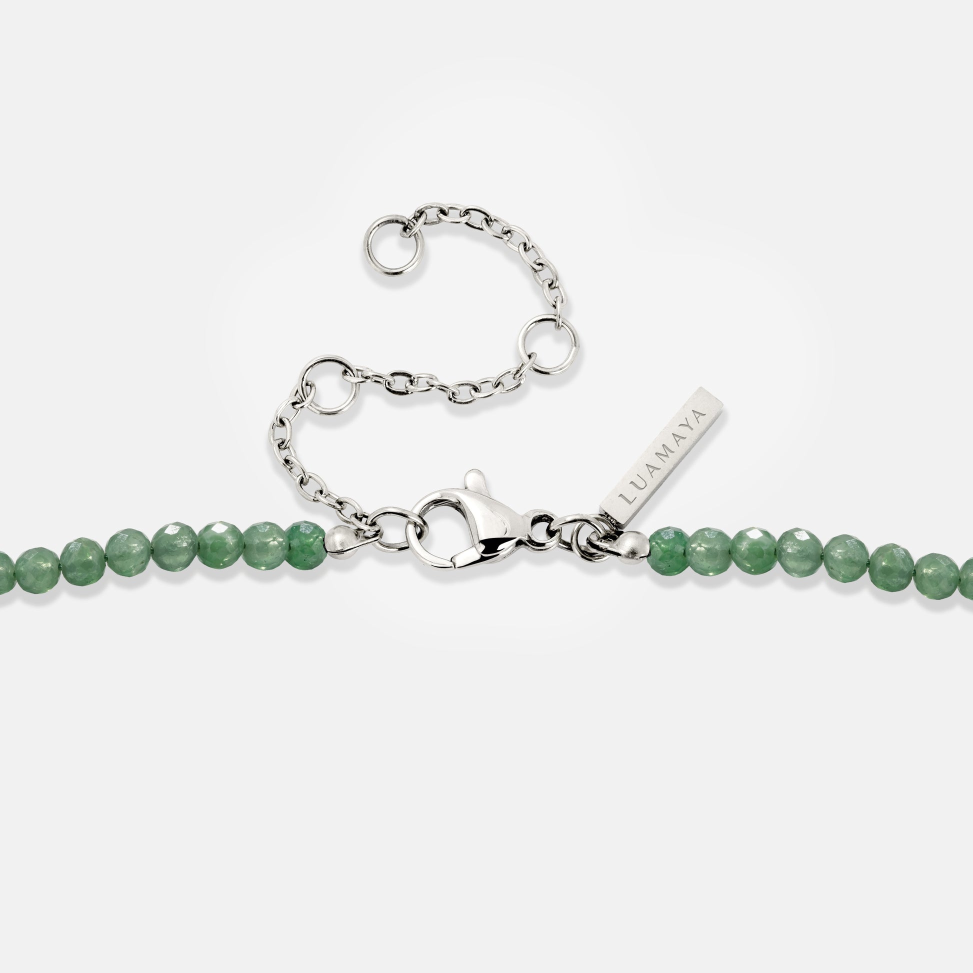 Il quarzo è spesso considerato una pietra di purezza e protezione e si trova in molte forme e colori in natura. Il quarzo verde si dice favorisca l’armonia e aiuti a sciogliere blocchi emotivi. La nostra collana “Eden” è composta da piccole perle di quarzo verde, la cui colorazione naturale rende la collana un gioiello unico. Da sola o in look a strati con altre collane, questo pezzo è un vero e proprio eye-catcher! Indossala come piccolo portafortuna e lasciati calmare ed equilibrare dalle pietre naturali e dal colore verde chiaro.