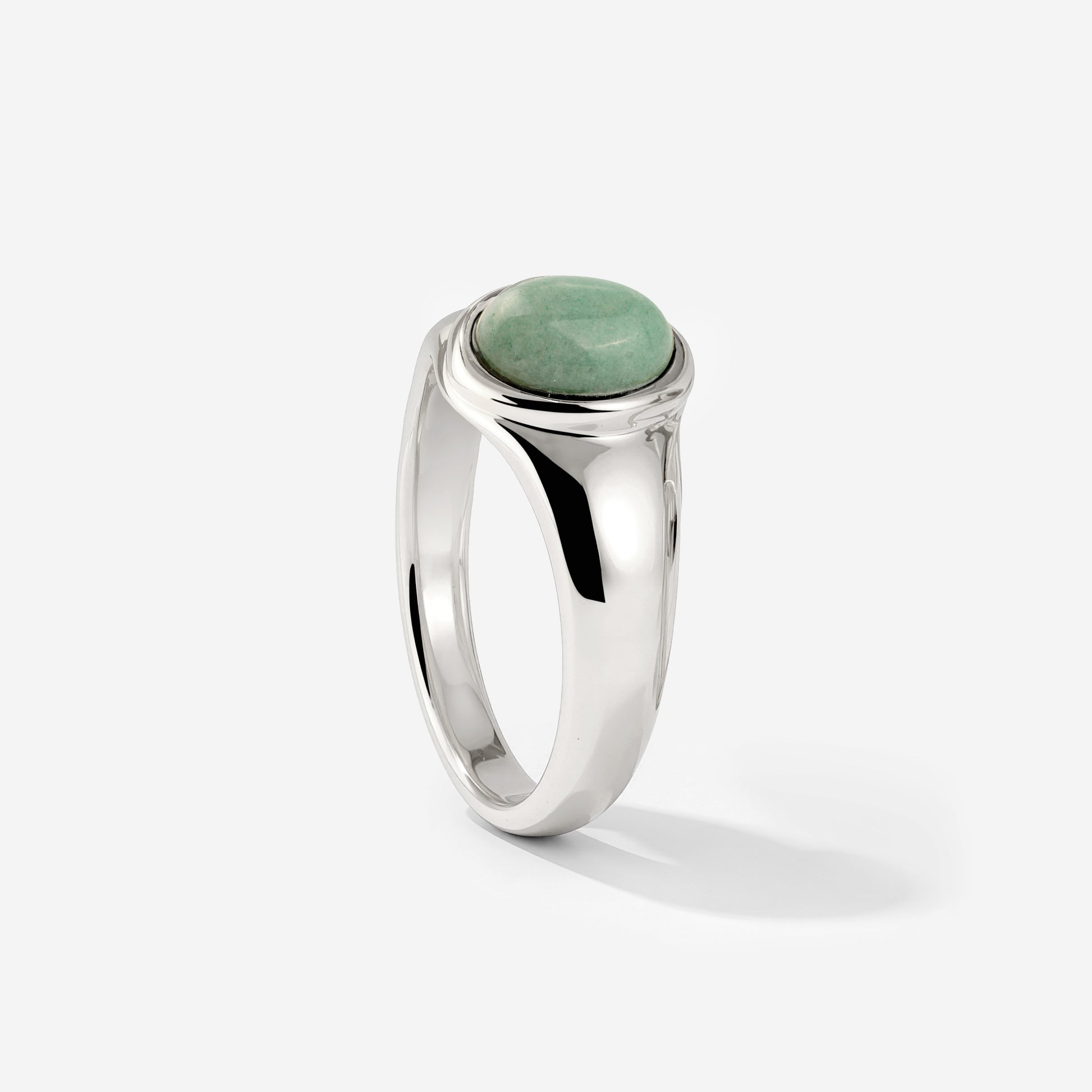 L’avventurina verde è spesso associata a crescita, rigenerazione ed equilibrio. Soprattutto nei momenti di stress, si dice abbia un effetto calmante e aiuti ad aprirsi a nuovi percorsi e opportunità, supportando chi la indossa nel lasciar andare vecchi schemi. Il punto focale del nostro anello “Eden” è la pietra di avventurina ovale verde chiaro, che con il suo colore delicato dona calma al gioiello. L’ampia fascia dell’anello crea un contrasto deciso, trasformandolo in un vero statement piece che non puoi lasciarti sfuggire.