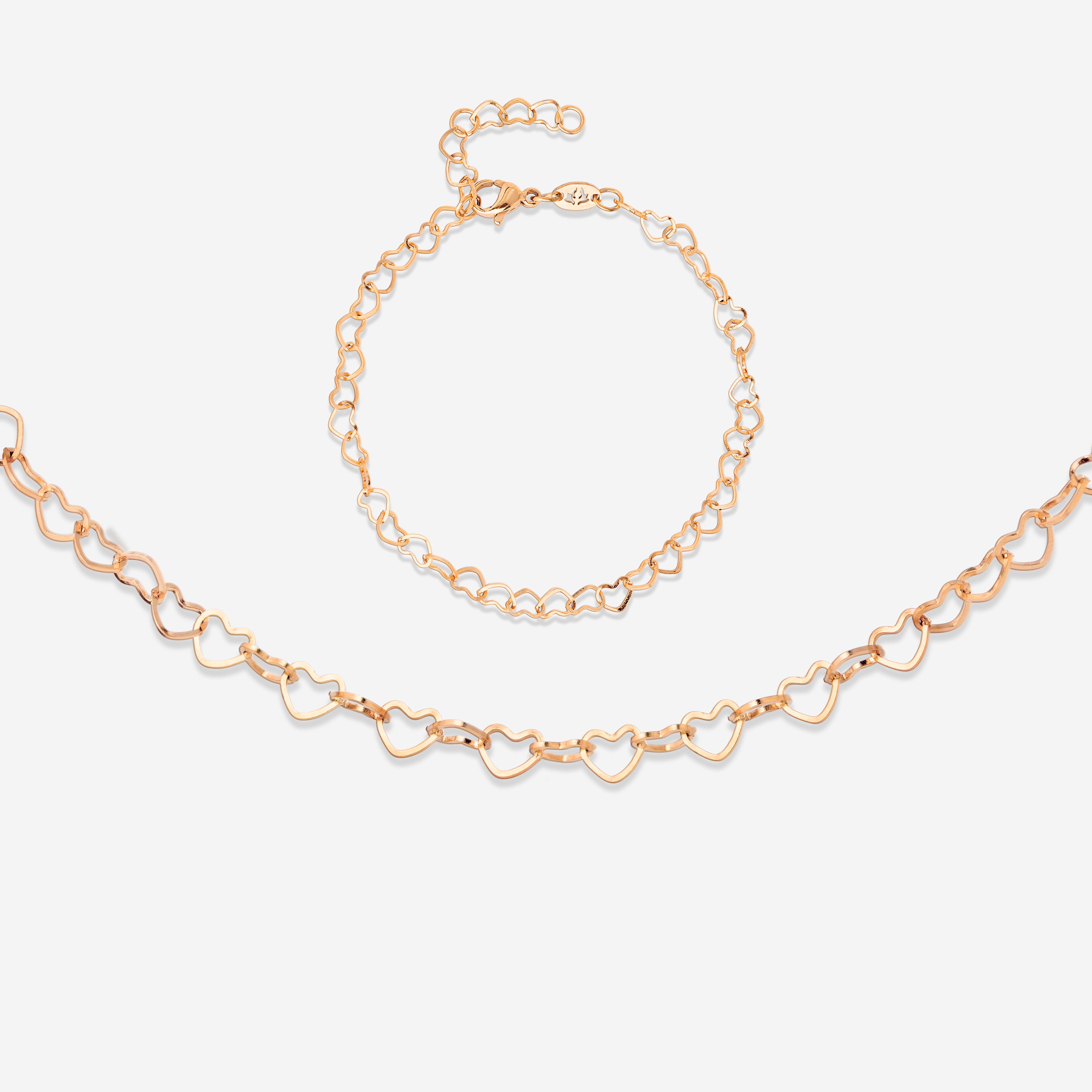 Descriveresti il tuo stile come giocoso, dolce ma comunque elegante? Allora hai bisogno del nostro bundle “Heart after Heart”! I piccoli cuori delicati e intrecciati della collana e del bracciale coordinati sono discreti, ma donano a ogni outfit quel tocco in più senza mai sovrastarlo. Che tu li indossi da soli o come pezzi da sovrapporre, questi gioielli ti ruberanno sicuramente il cuore e diventeranno presto il tuo duo preferito che non vorrai più togliere!