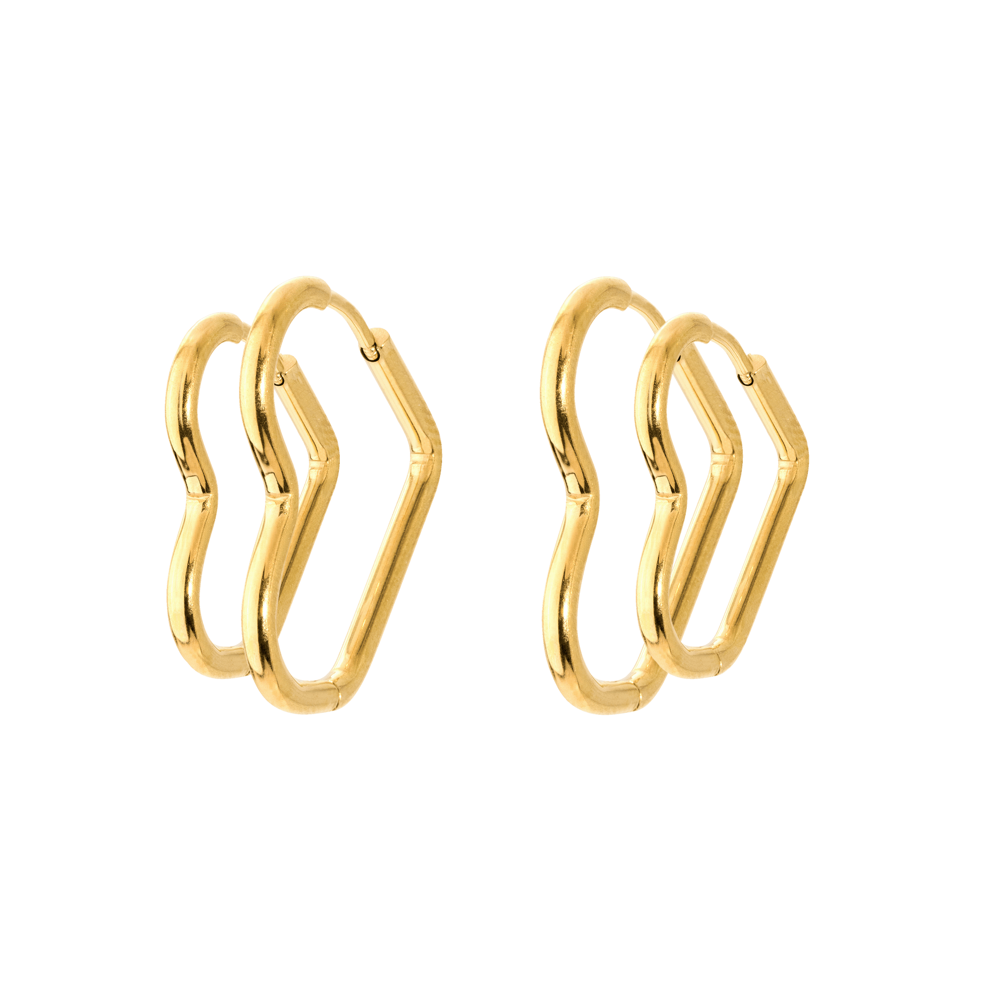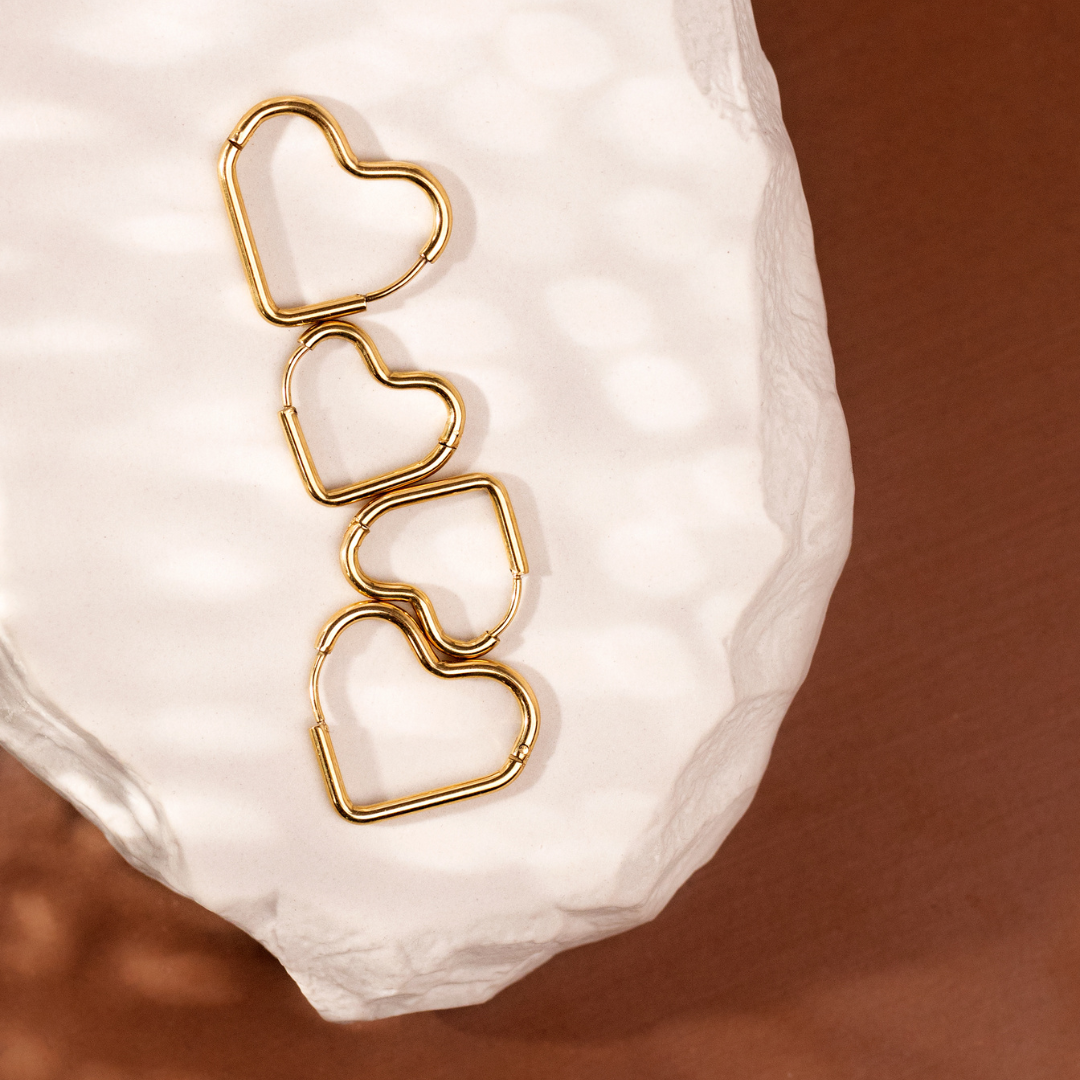 Tu hai il cuore al posto giusto... e preferibilmente anche all'orecchio? Allora il nostro set di cerchi 'Heartily' è proprio quello che fa per te! Questi orecchini carini faranno sicuramente battere più forte tutti i cuori e sono il dettaglio perfetto per il tuo look, sia che tu sia in versione casual o chic.