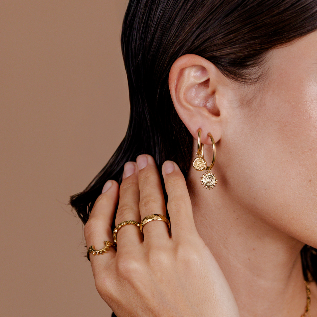Gli orecchini a cerchio basic sono un vero must-have in ogni scatola dei gioielli. Sono facili da abbinare, possono essere indossati giorno e notte e costituiscono la base perfetta per qualsiasi look. Se un cerchio semplice ti sembra troppo noioso, ci sono infinite possibilità per personalizzarlo con i nostri charms. Indossali a modo tuo!