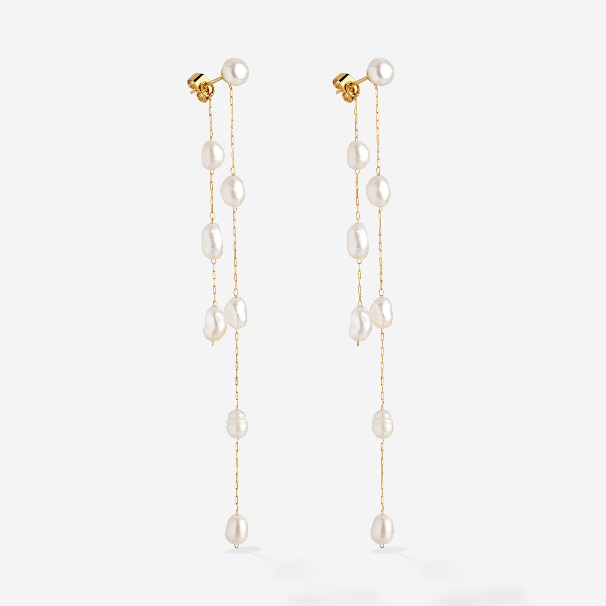 Pura eleganza racchiusa in un orecchino? Sembra proprio che si tratti degli 'Jules Unique Pearl Fall Studs' di Lola. La catenina super delicata combinata con le piccole perle d'acqua dolce dalle forme individuali rende questo orecchino davvero speciale. Il pendente più corto pende davanti al lobo dell'orecchio, mentre l'elemento più lungo si trova dietro. Ciò crea una bella profondità e un design unico ed elegante.