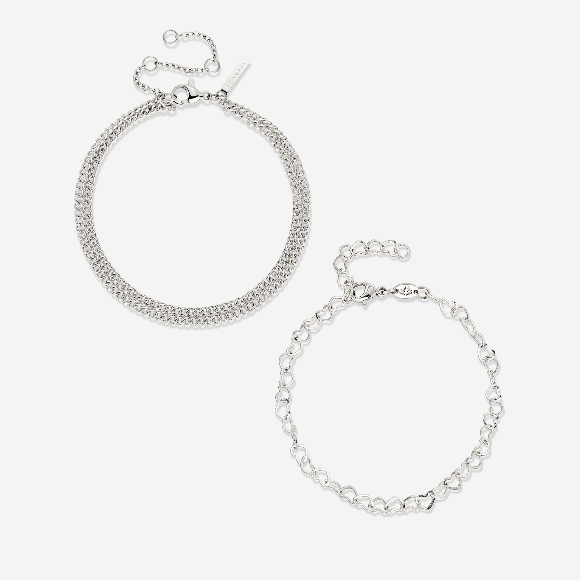 Sovrapporre i bracciali non deve essere complicato o appariscente, e con il nostro bundle “Light-hearted” il tuo look è pronto da indossare. Sia il nostro bracciale “Heart after Heart”, composto da piccoli cuori, sia il nostro bracciale “Curb Chain” Double con le sue classiche maglie intrecciate sono discreti e senza tempo. Che li indossi insieme su un polso o uno su ciascun braccio, i due bracciali si completano e valorizzano a vicenda, creando un look elegante ma comunque interessante da vedere, perfetto per tutti i giorni e ogni occasione.
