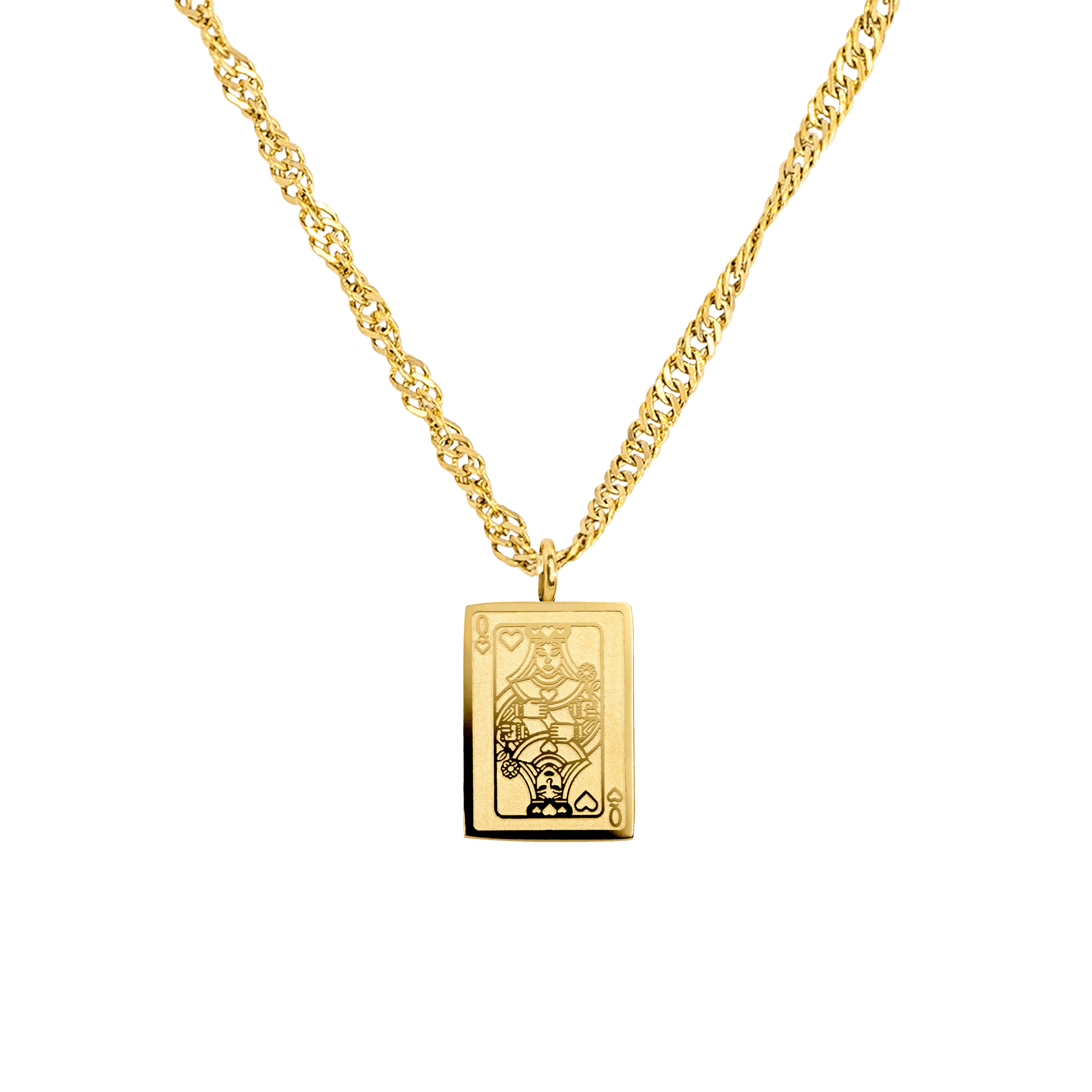 La Regina di Cuori simboleggia nel gioco di carte grazia, eleganza e forza femminile. È un emblema della potenza della femminilità. La nostra collana 'Like a Queen' è l'ideale per regalare un piccolo momento di gioia alla tua regina del cuore e mostrare quanto sia preziosa per te.