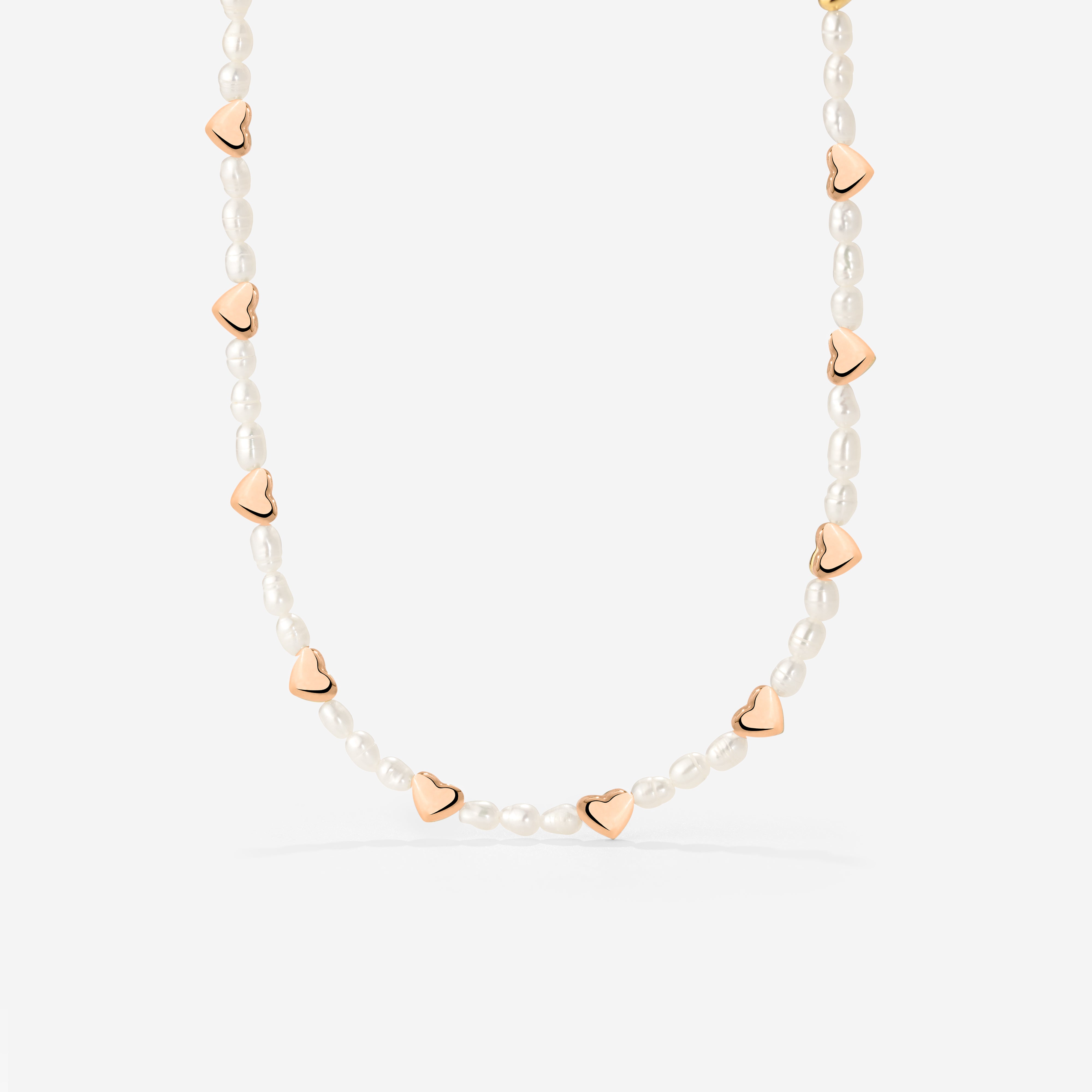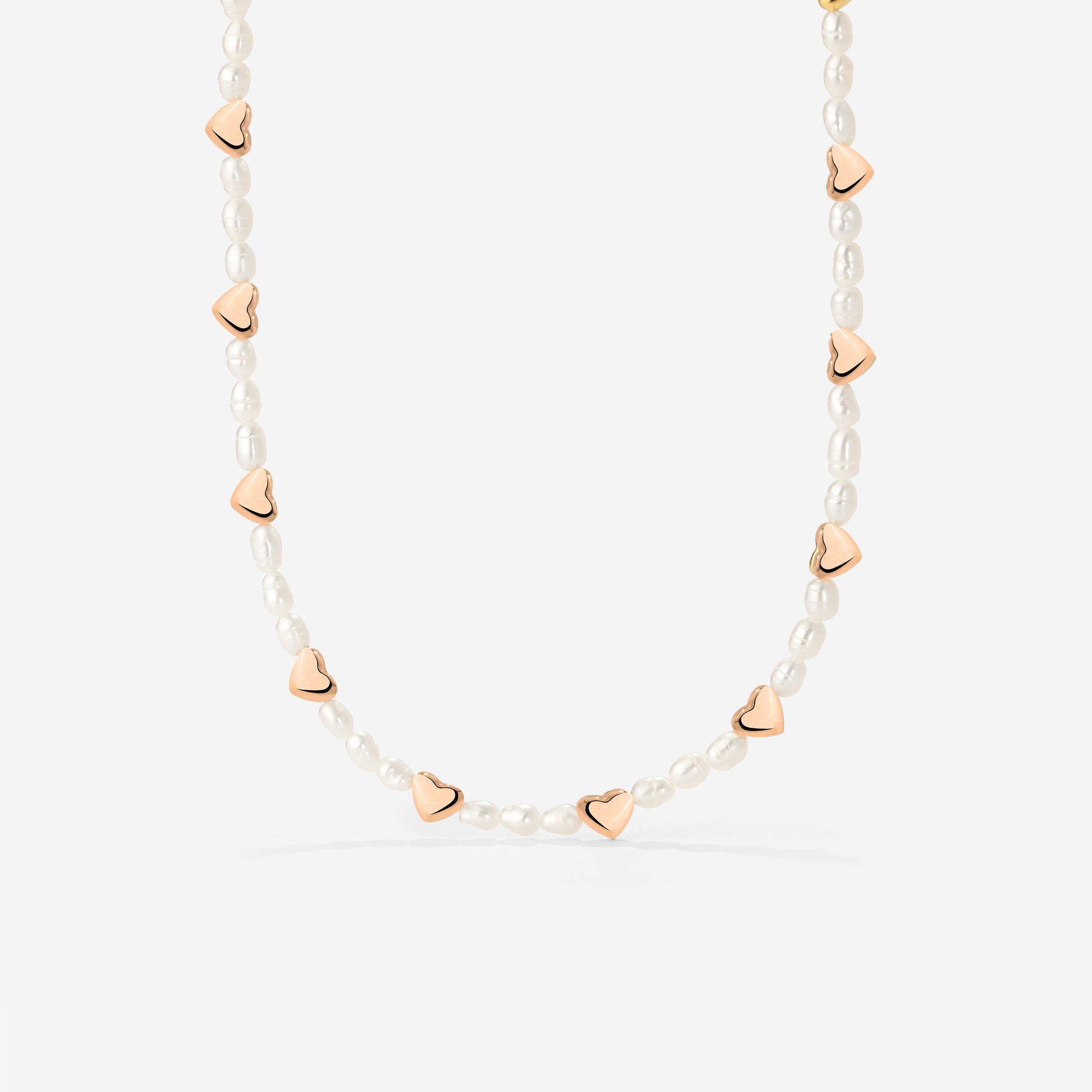 Le perle d’acqua dolce sono un elemento essenziale per tutto l’anno, amate per la loro eleganza senza tempo e continuamente reinterpretate in nuovi trend e design. La nostra collana “Love Pearls” presenta perle uniche disposte in gruppi di tre, alternate a piccoli cuoricini che le donano un tocco giocoso e dolce. Se stai cercando una versione più moderna e rilassata della classica collana di perle, questo gioiello è la scelta perfetta per dare un’aria fresca alla tua collezione!