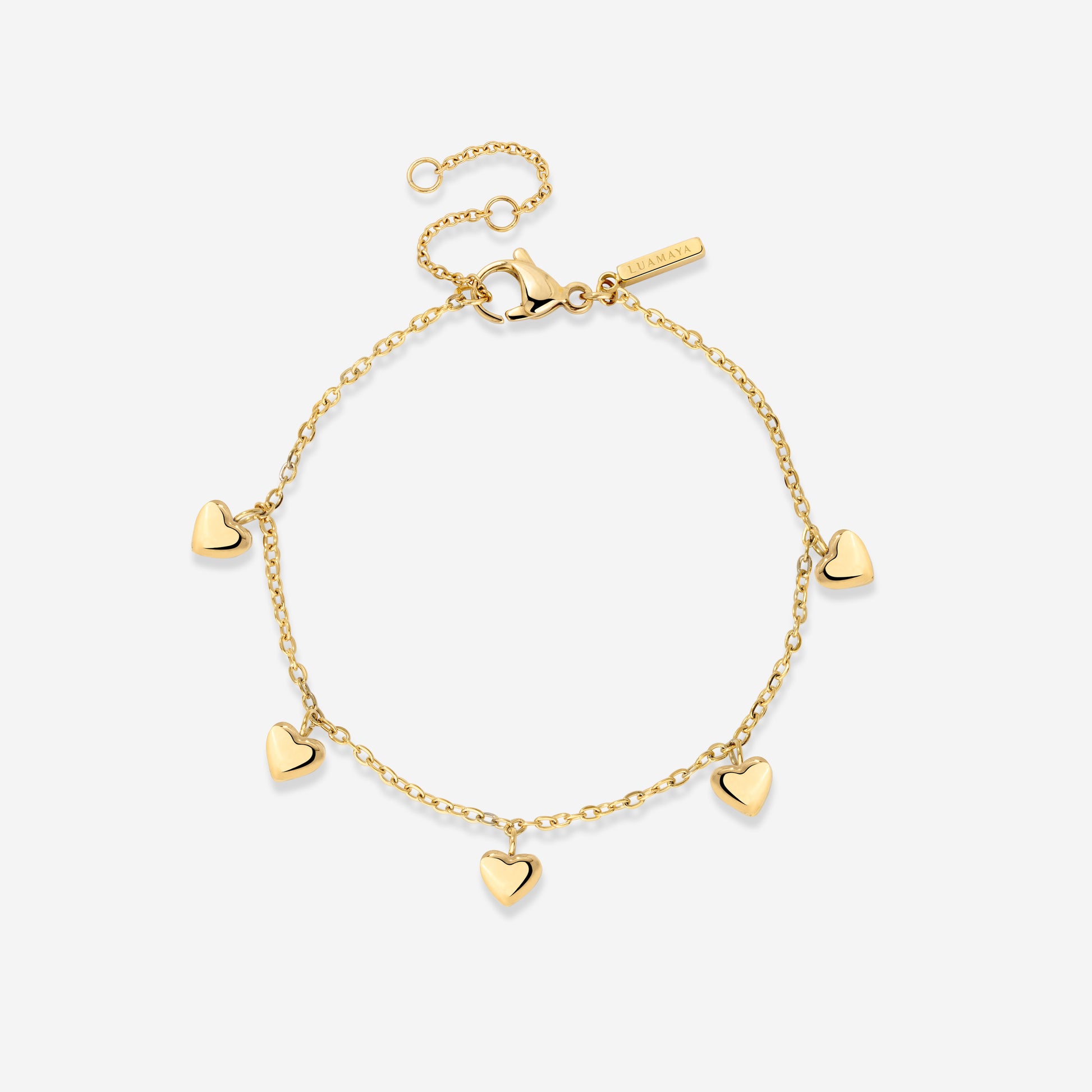 Mentre fuori le giornate diventano sempre più fredde e buie, il nostro bracciale “Lovely Heart” ti regalerà calore, amore e buonumore! La catenina delicata con i suoi cinque piccoli ciondoli a forma di cuore è perfetta per accogliere l’inverno con vibrazioni positive e per viverlo al meglio. Ogni volta che indosserai questo bracciale, non potrai fare a meno di sorridere — e lo vorrai subito indossare di nuovo il giorno dopo. Indossalo da solo per un look carino e minimalista, oppure abbinalo ai nostri altri pezzi a forma di cuore per un tocco giocoso.