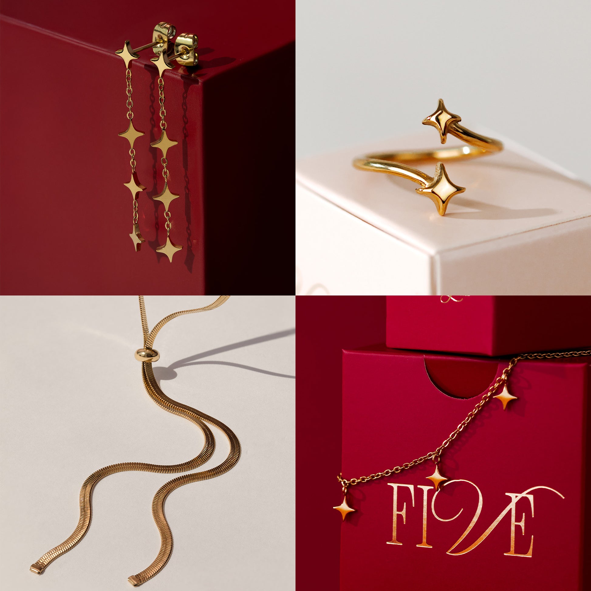 I gioielli sono realizzati in acciaio inossidabile 316L e, a seconda del colore, sono placcati in oro 14 carati. Sono ipoallergenici e resistenti all'acqua al 100%.