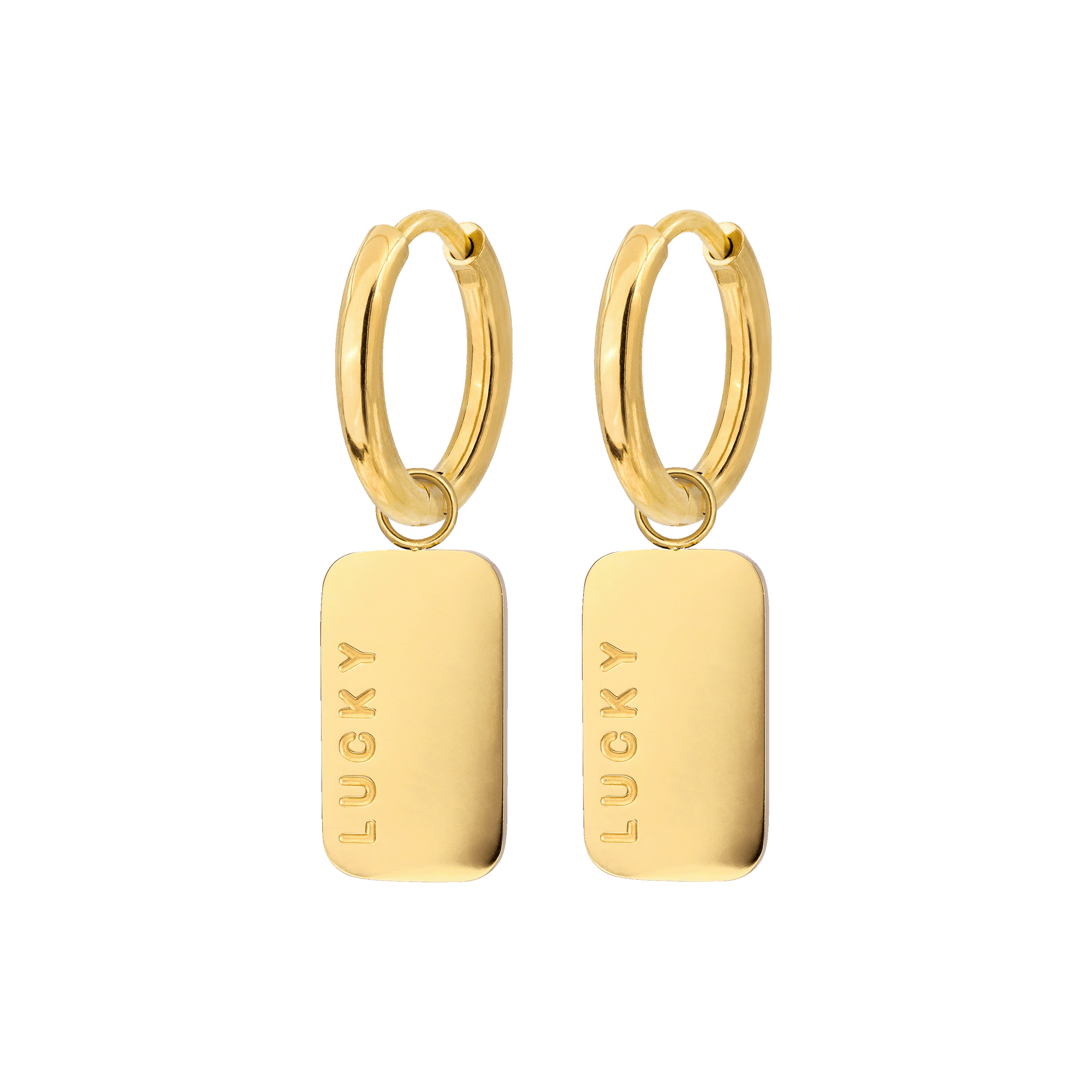 Hai bisogno di una dose di fortuna? Con il nostro set di orecchini 'Lucky Pendant' in misura Small porterai sempre con te un tocco di buona sorte – e un promemoria costante di vederti come una vera Lucky Girl. Il ciondolo minimalista è elegante e senza tempo, perfetto per ogni outfit e occasione – un vero tuttofare. Che sia il tuo compagno quotidiano o il pezzo forte per giornate speciali, questo set ti trasmetterà sicuramente buon umore e vibrazioni positive!