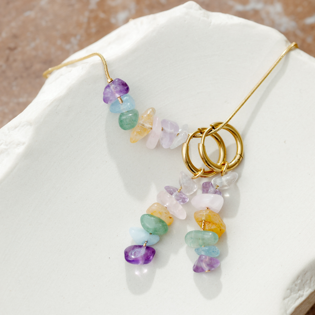 Il cristallo di rocca, conosciuto anche come la pietra della luce, è da sempre associato a forti proprietà spirituali e curative. Spesso viene considerato un purificatore per il corpo, la mente e l’anima, e può aiutare a liberarsi dalle energie negative. Con il nostro set di cerchietti “Luminous Lisy” Small, puoi portare sempre con te l’energia di queste potenti gemme e lasciarti conquistare dai loro effetti. I cristalli di rocca colorati in delicate tonalità pastello, abbinati ai nostri cerchietti classici, creano un look elegante ma originale – perfetto da indossare in qualsiasi occasione!
