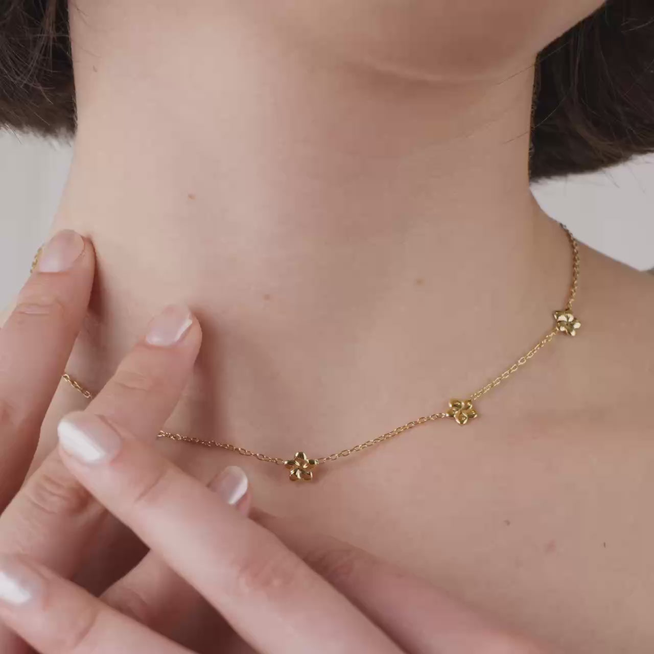 Quando pensi alla primavera, all'estate e al tempo soleggiato, probabilmente ti viene in mente un prato con fiori sparsi nell'erba verde, mentre gli uccellini cinguettano in sottofondo. Il nostro "Meadow" Choker evoca proprio questa immagine! Cinque piccoli e graziosi ciondoli a forma di fiore adornano la delicata catena, portando vibrazioni primaverili nella tua vita quotidiana. Non perdertelo se ami vagare mentalmente tra i prati primaverili!