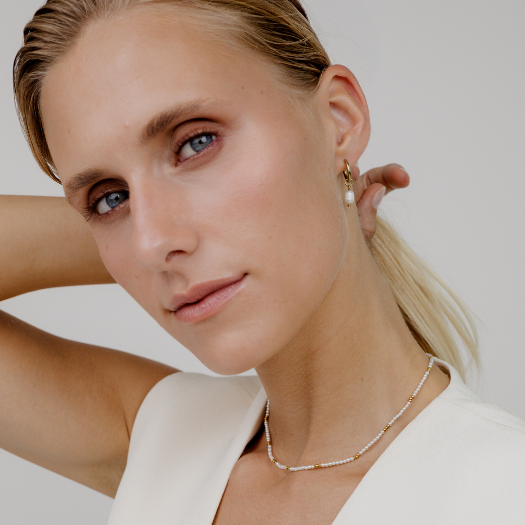 Le perle sono sempre un vero e proprio classico con cui non puoi sbagliare. Che sia per tutti i giorni o per occasioni speciali, sono sempre eleganti, senza tempo e bellissime da vedere. Nel nostro bundle “Pearly” ricevi il nostro set di orecchini “Perla Sola” nella misura Small e il nostro choker “Seashore” insieme, così non dovrai pensare troppo al tuo look di gioielli. Questi due pezzi si abbinano meravigliosamente e ti fanno sempre risplendere.