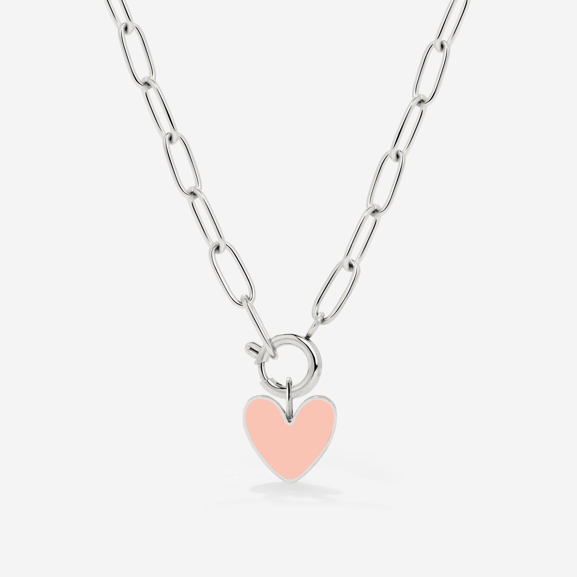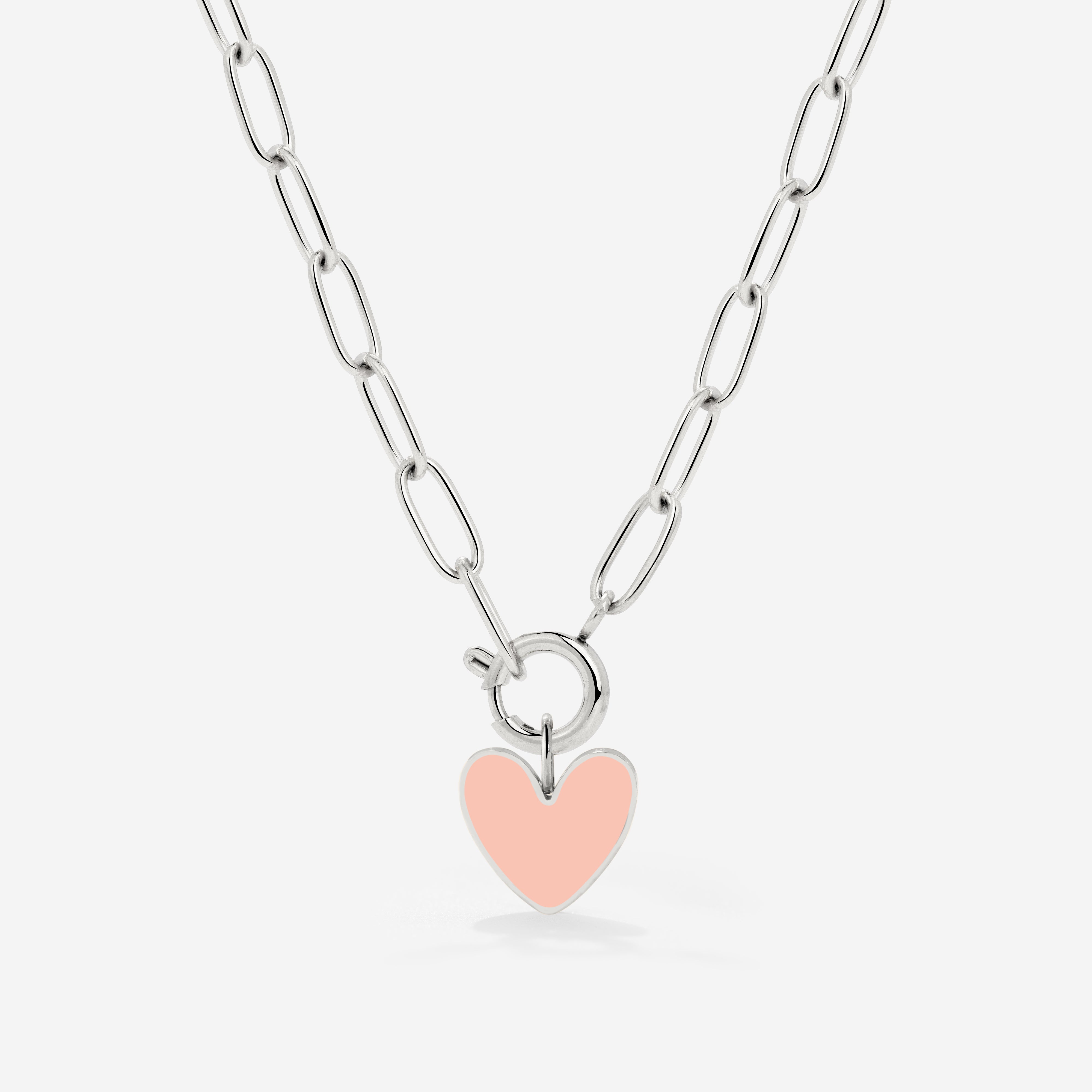 Pink Heart Oval Links Collana Set Argento