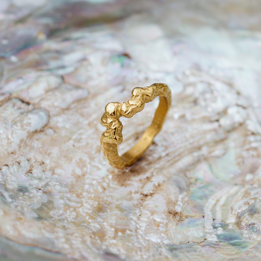Ispirato alla struttura irregolare dei coralli, il nostro anello “Reef’s Whisper” è qualcosa di davvero speciale. La texture organica cattura e riflette i raggi di luce, facendo brillare il gioiello — e anche te con esso! Grazie alla fascia sottile, questo pezzo è perfetto anche come anello da stacking e può essere combinato facilmente con gli altri nostri anelli. Provalo e crea i tuoi look personali!
