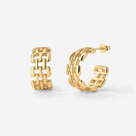 Il nostro anello “Reverie” è un vero tesoro della nostra collezione e merita un posto nel tuo portagioielli il prima possibile. Il design, ispirato a maglie di catena intrecciate, è audace e d’impatto, così puoi indossare l’anello anche da solo. Brilla anche se abbinato ad altri anelli su dita diverse. E psst… per il tuo perfect match, abbiamo i coordinati “Reverie” Hoop Studs!