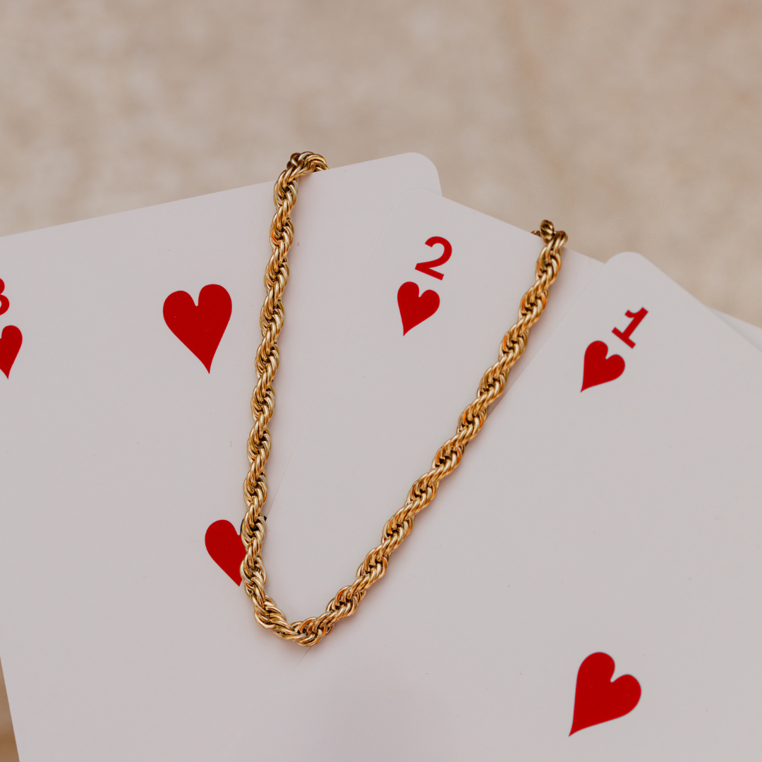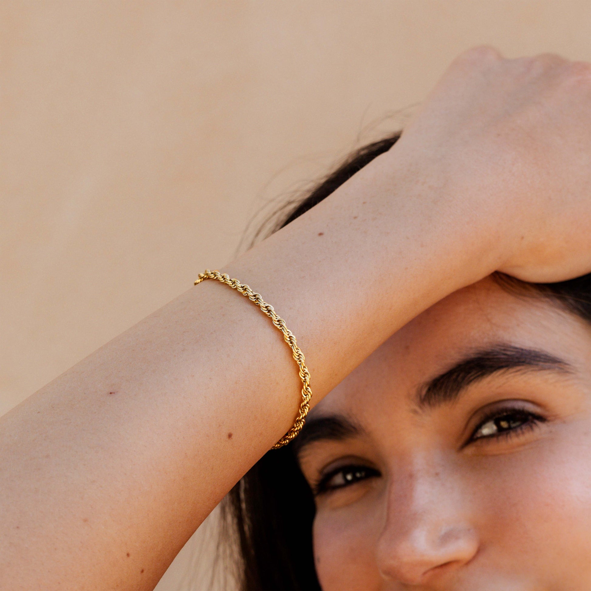 I buoni basic pieces non possono mancare in nessun look, e con il nostro bracciale “Rope Chain” è proprio quello che ottieni! Il bracciale leggermente più largo è la base perfetta per un look a strati, ma anche indossato da solo ha un aspetto classico e senza tempo, diventando così il tuo alleato ideale per l’estate e oltre. Che tu voglia brillare con lui in vacanza in Italia o nella vita di tutti i giorni a casa, sta solo a te decidere, ma puoi essere sicura che il nostro bracciale ti accompagnerà in tutte le tue avventure!