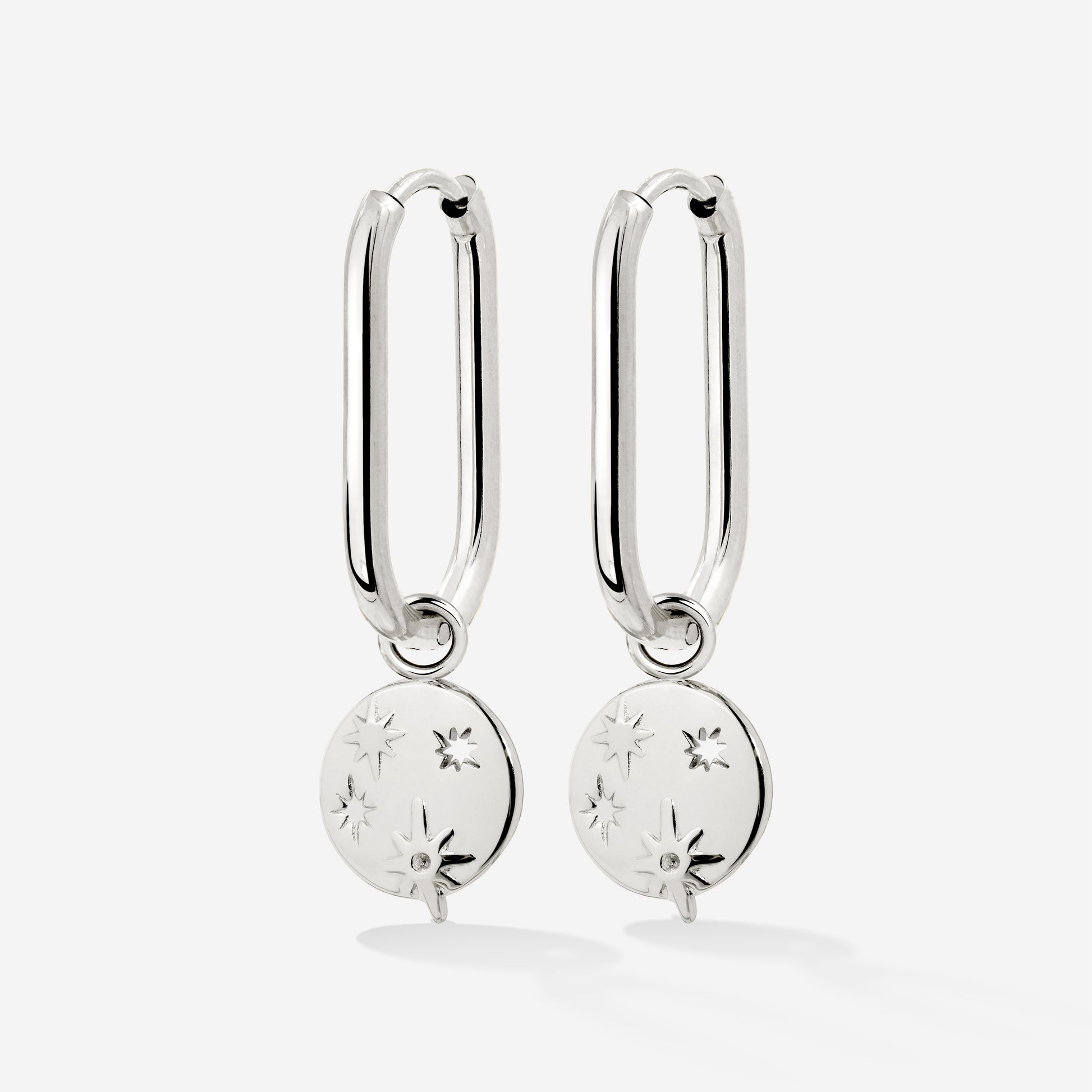Shiny Stars Oval Hoop Set Small Argento