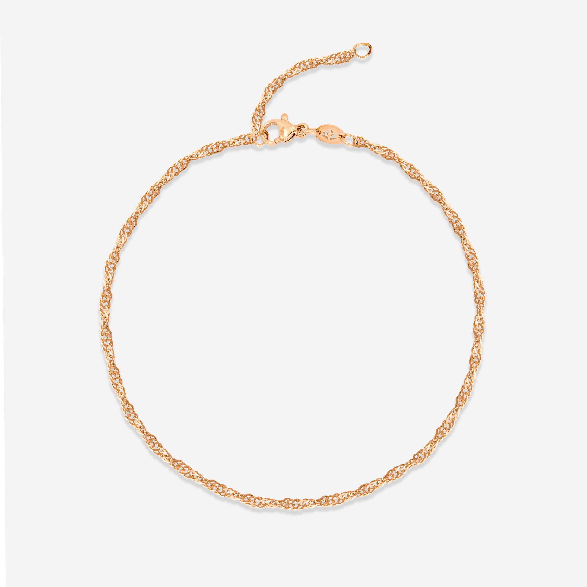 Tutti indossiamo collane e bracciali, ma quando si tratta di cavigliere, non tutti sono ben forniti – e vogliamo pensarci noi! E quale pezzo migliore per farlo della della nostra cavigliera Slim Singapore? Semplice ed elegante, ma comunque giocosa, è il perfetto jolly per le giornate estive e per i tuoi outfit ancora più hot.