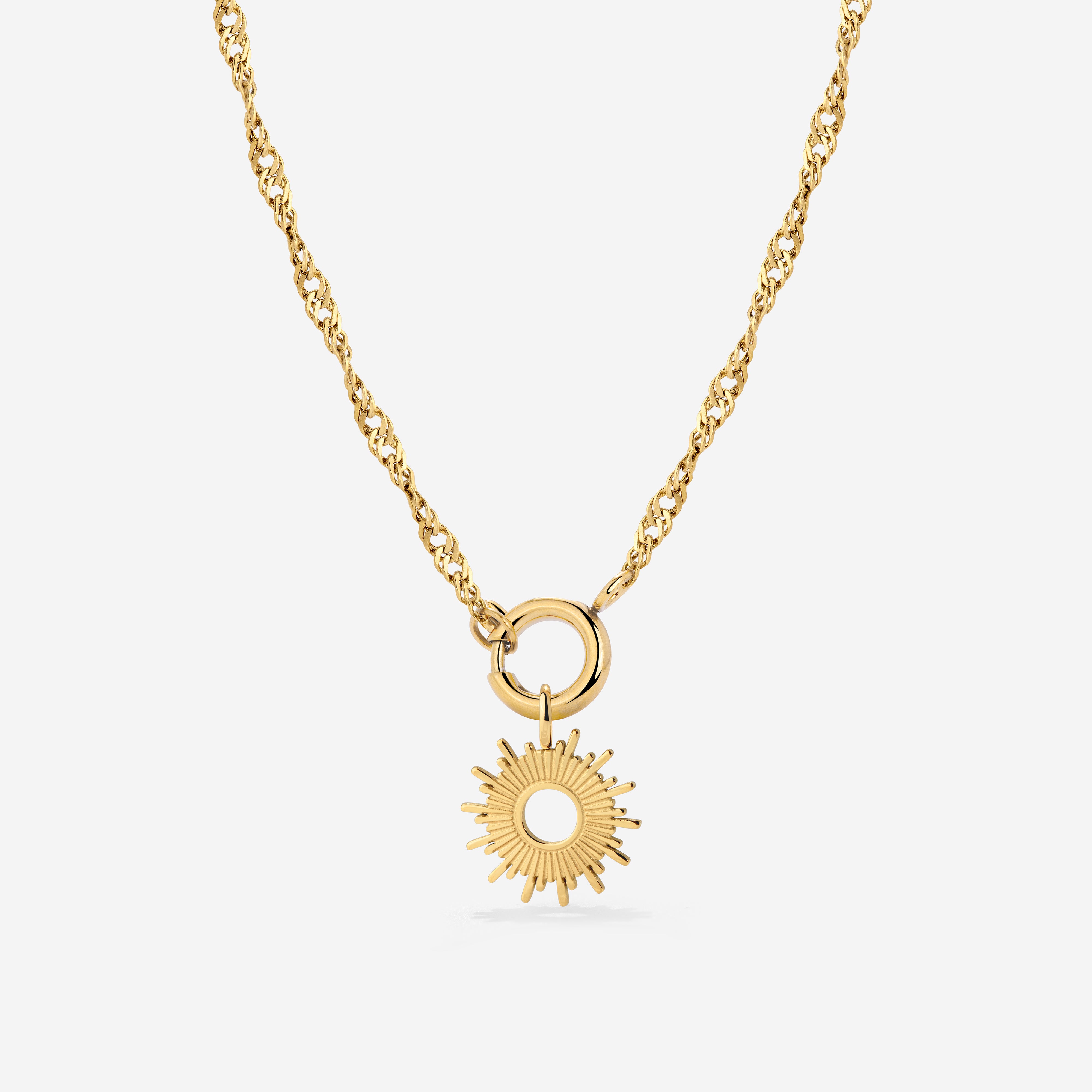 Egal wie kalt und dunkel die Tage werden, mit unserem “Sun Ray” Singapore Chain Necklace Set trägst du deinen eigenen kleinen Sonnenschein stets bei dir. Der süße Sonnen-Charm passt perfekt zur leicht gedrehten Singapore Chain und dient als täglicher Reminder, dass nach jedem Regen und jeder Nacht auch wieder die Sonne scheint und bessere Tage mit sich bringt. Ob als Self-Love Geste an dich selbst, oder als positives Affirmations-Geschenk an deine beste Freundin, dieses Schmuckstück ist einfach ein Mood Booster!
