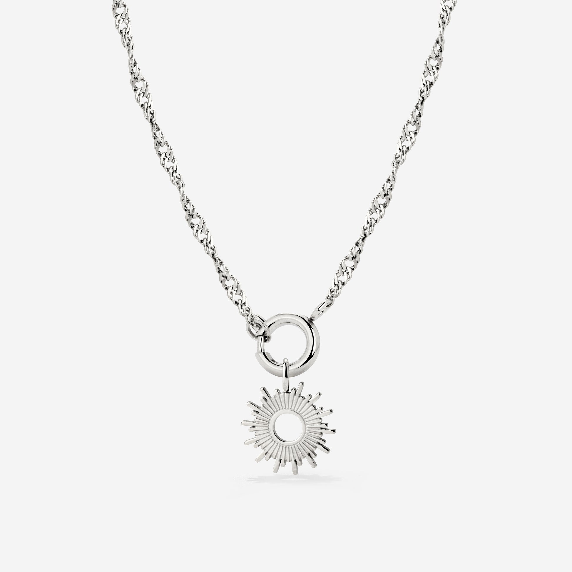 Egal wie kalt und dunkel die Tage werden, mit unserem “Sun Ray” Singapore Chain Necklace Set trägst du deinen eigenen kleinen Sonnenschein stets bei dir. Der süße Sonnen-Charm passt perfekt zur leicht gedrehten Singapore Chain und dient als täglicher Reminder, dass nach jedem Regen und jeder Nacht auch wieder die Sonne scheint und bessere Tage mit sich bringt. Ob als Self-Love Geste an dich selbst, oder als positives Affirmations-Geschenk an deine beste Freundin, dieses Schmuckstück ist einfach ein Mood Booster!