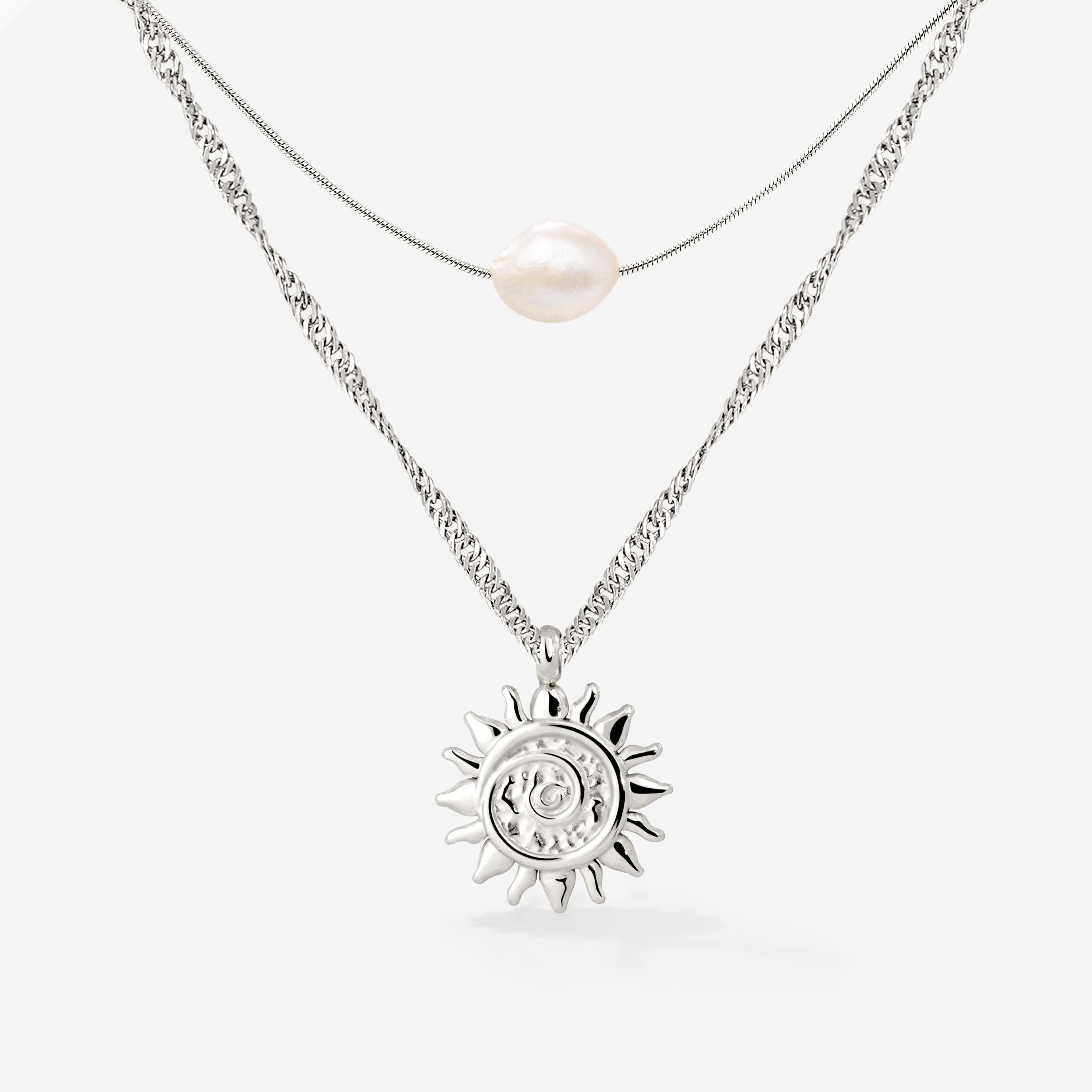 Cosa si abbina meglio a un pendente a sole luminoso se non le classiche perle d’acqua dolce? Con il nostro bundle “Sunny Pearls” ottieni entrambi in un’unica soluzione e non dovrai più preoccuparti di come creare il tuo look a strati. La nostra collana “Sunny Swirl”, con la sua delicata catena Singapore intrecciata e il pendente a sole ricco di dettagli, si abbina perfettamente alla “Minimalist Pearl” Necklace, caratterizzata da una catena snake rotonda e raffinata con una splendida perla d’acqua dolce lucente. Provala subito!