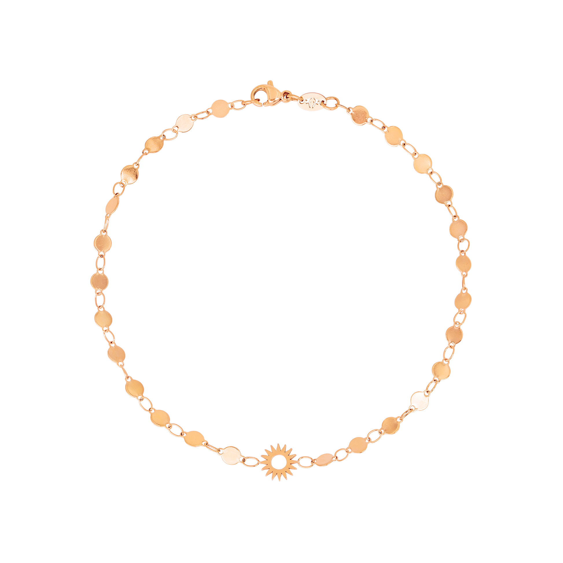 Con la nostra cavigliera 'Sunny Side Up', il sole è sicuramente sempre dalla tua parte, rendendoti l'attrazione radiosa per ogni occasione, sia in spiaggia che alla festa estiva più calda. La cavigliera, composta da fini dischetti e combinata con l'elegante ciondolo a forma di sole, è l'accessorio perfetto per aggiungere un accento scintillante alla tua caviglia!