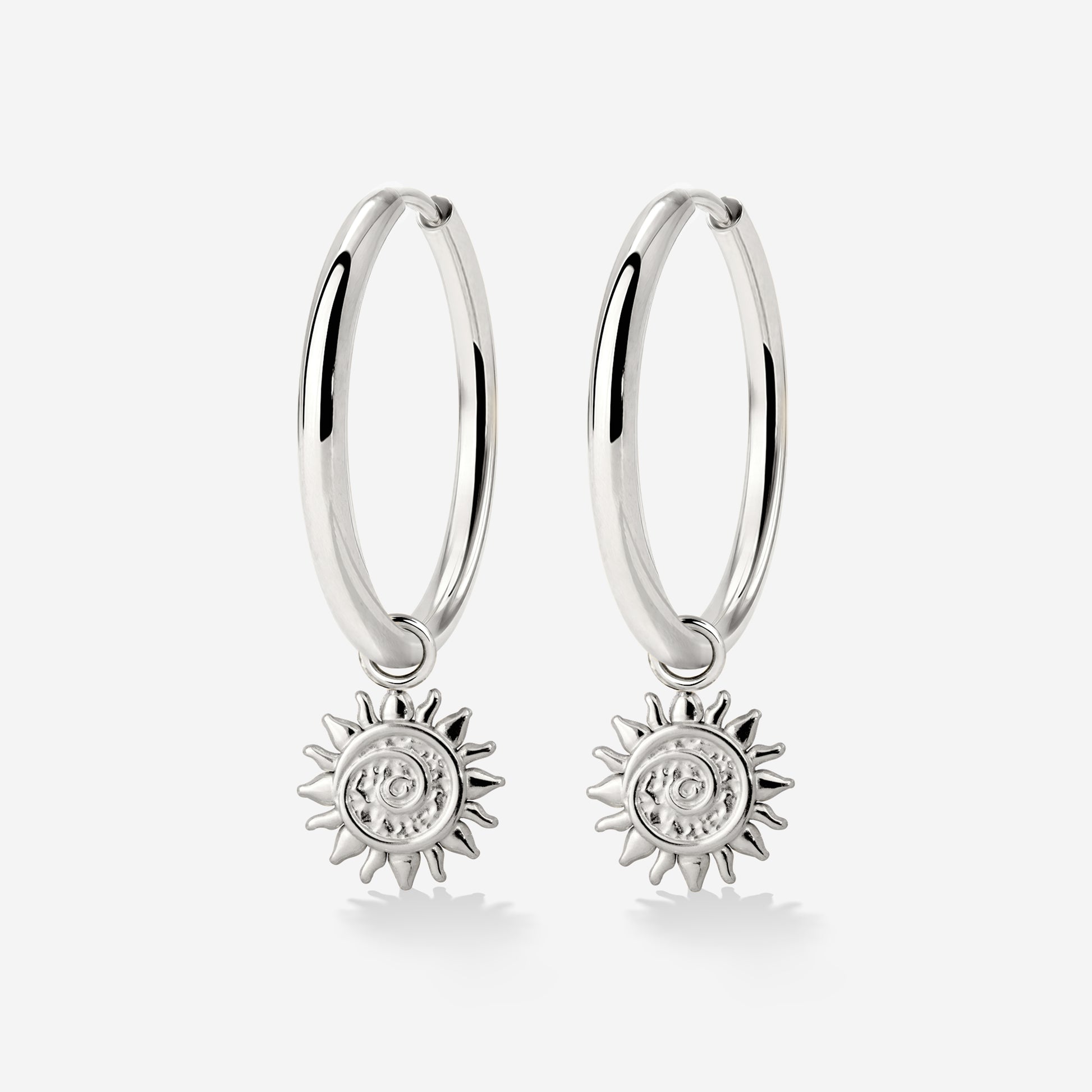 Con il nostro set di hoops 'Sunny Swirl' nella taglia Large, porti sempre con te il sole e le buone vibrazioni! I nostri hoops classici e eleganti combinati con il radioso charm a forma di sole sono l'aggiunta perfetta a ogni tuo look estivo e sicuramente attireranno l'attenzione, sia in città che alla festa in spiaggia più calda.