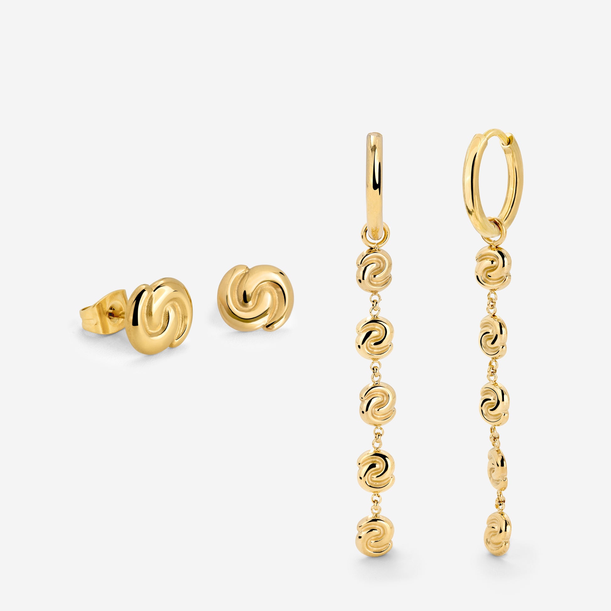 Se cerchi un look armonioso e senza sforzo che non devi faticare a creare ogni mattina, allora ti serve il nostro “Tides of Time” Bundle! La combinazione degli orecchini a bottone abbinati, perfetti per il secondo o terzo foro all’orecchio, e il set di cerchi è giocosa ma discreta e senza tempo, così puoi indossarlo in ogni occasione. Il design a forma di onda è unico ma ideale anche per look minimalisti. Non esitare!