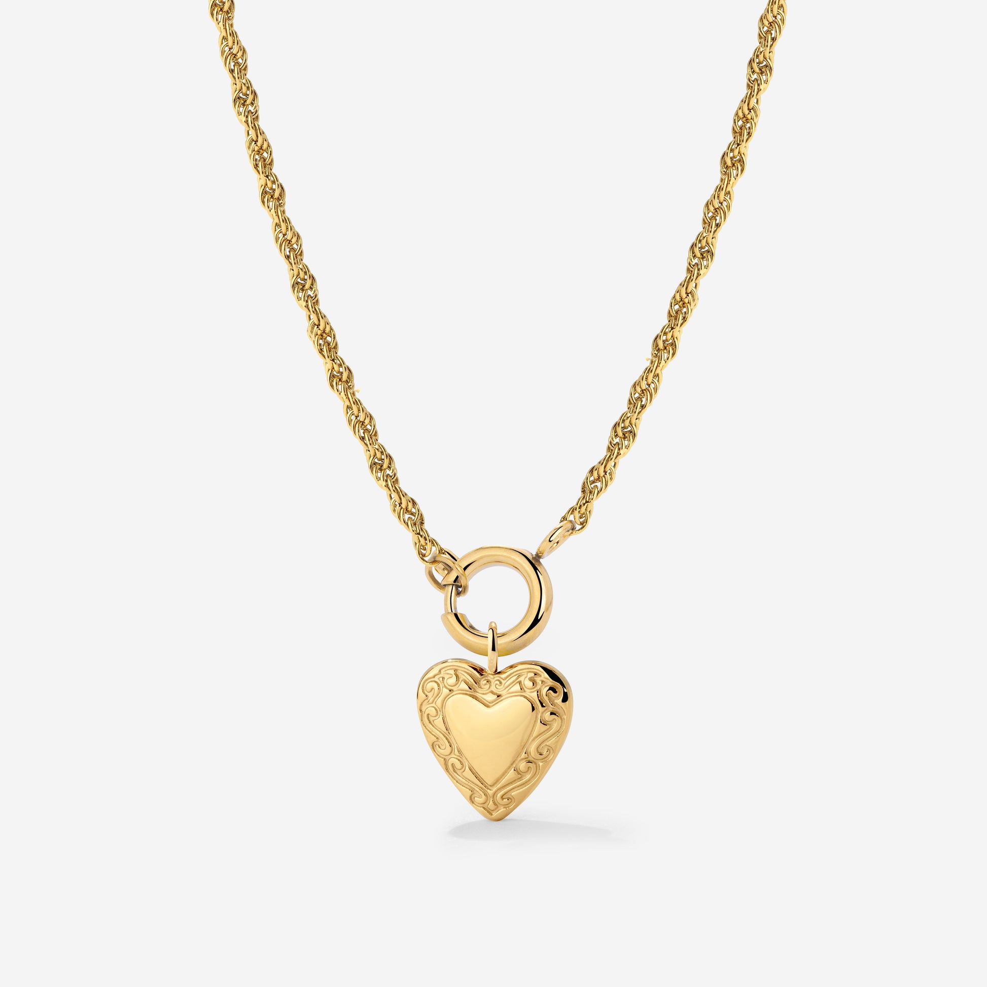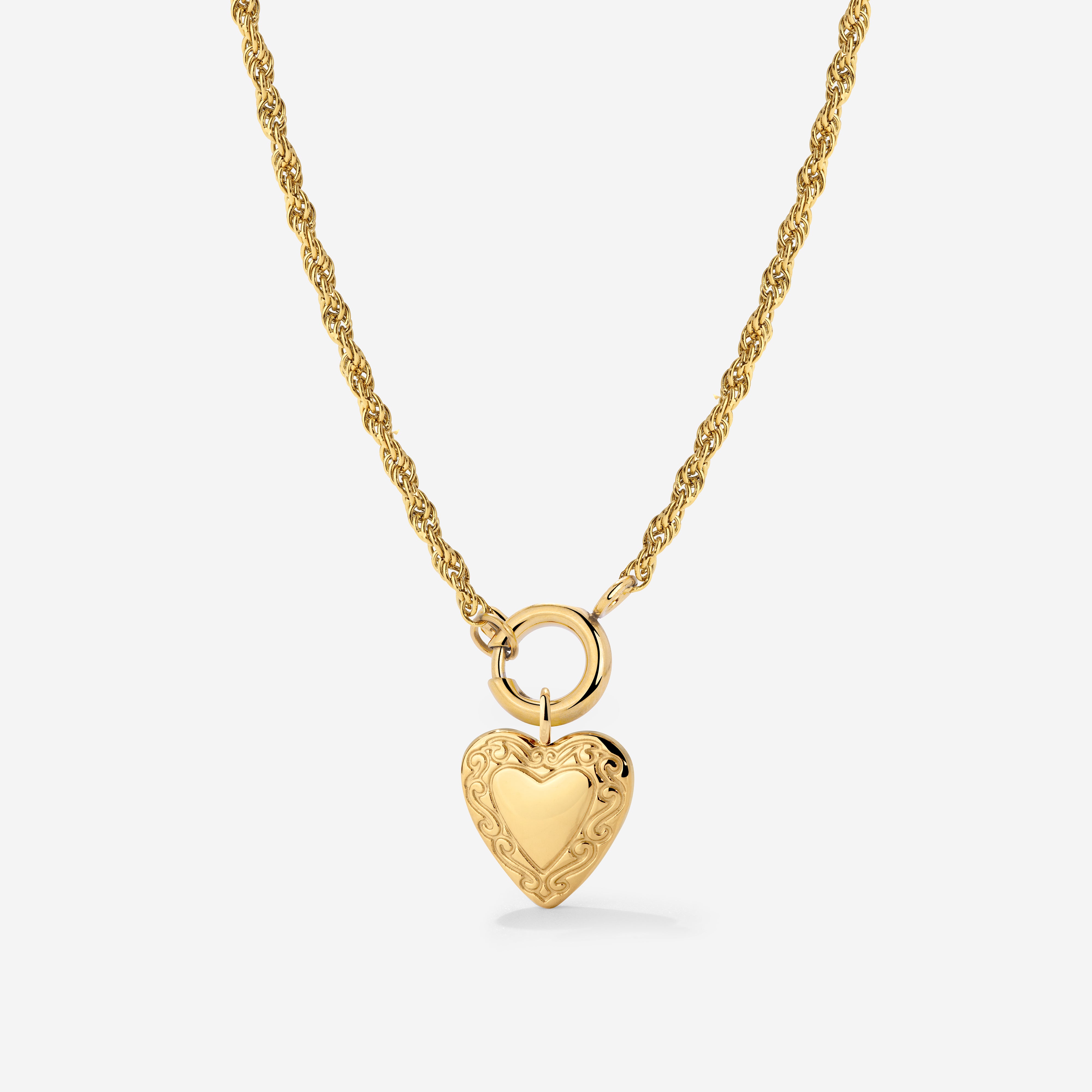 Du magst vintage Designs und feine, detaillierte Akzente bei deinem Schmuck? Dann wirst du unser “Vintage Heart” Rope Chain Necklace Set lieben! Die getwistete Kette komplementiert den kleinen, süßen Herz-Charm perfekt und unterstreicht den antiken Vibe, den das Schmuckstück ausstrahlt. Der Charm selbst wird durch feine, verschnörkelte Gravuren verziert, wodurch die Halskette erst recht so wirkt, als käme sie direkt aus dem Schmuckkästchen deiner Oma. Lass dir diesen Schatz auf keinen Fall entgehen und schnapp zu!