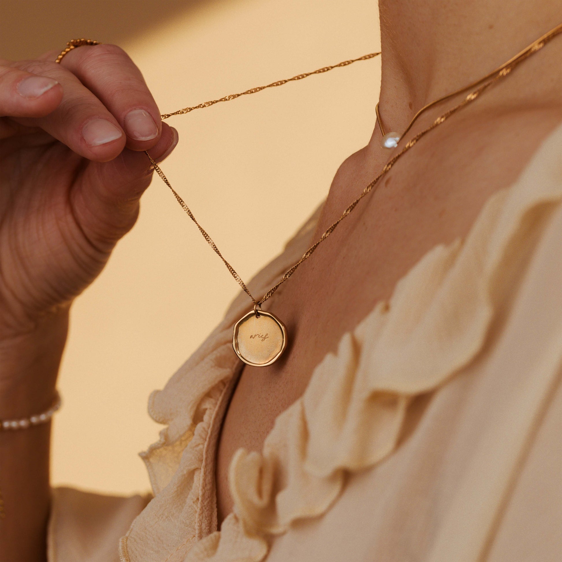 Il ciondolo a doppia faccia del nostro collare 'Aries / Widder' si abbina perfettamente alla catenina di Singapore elegante e delicata e può essere indossato da solo o come parte di un insieme con molti altri gioielli. Ideale per te stesso o come regalo magico e personale per i tuoi cari.