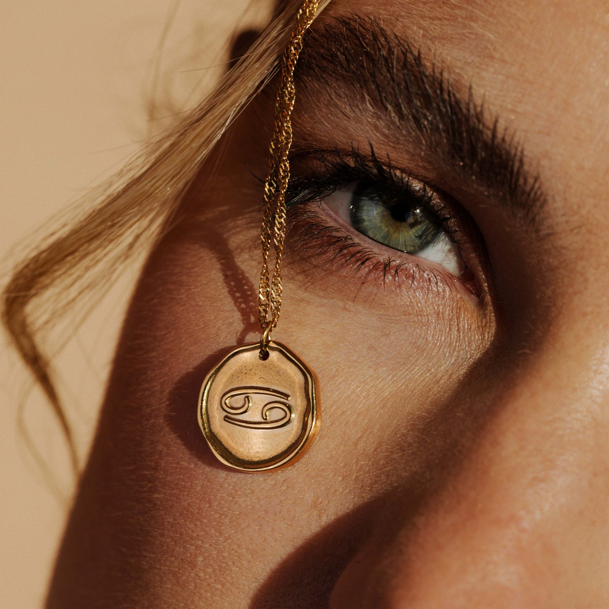 Il ciondolo a doppia faccia del nostro collare 'Cancer / Krebs' si abbina perfettamente alla catenina di Singapore elegante e delicata e può essere indossato da solo o come parte di un insieme con molti altri gioielli. Ideale per te stesso o come regalo magico e personale per i tuoi cari.