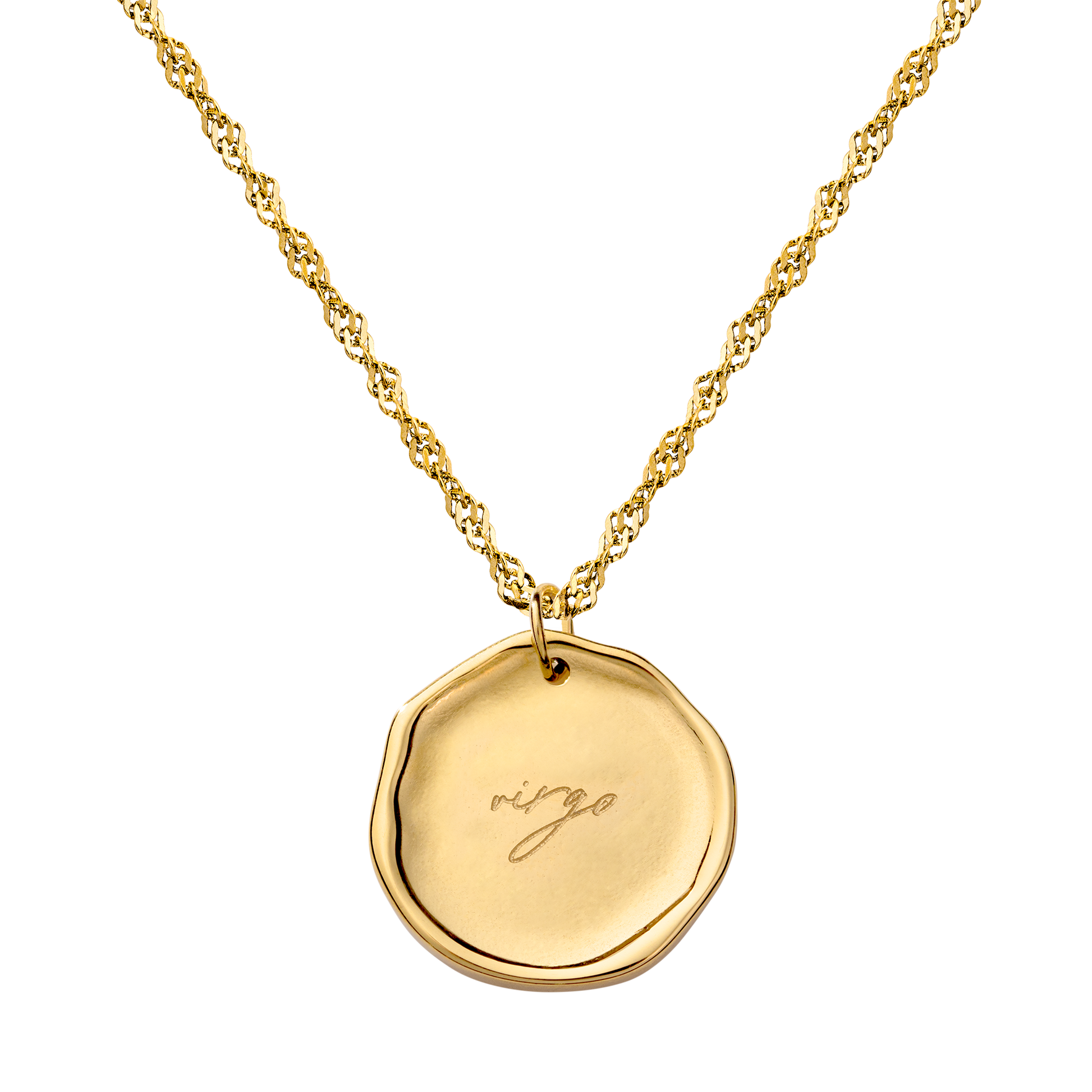La nostra collana 'Zodiac' è il regalo perfetto per ogni appassionata di astrologia, sia per un compleanno, il Natale o San Valentino. Il ciondolo elegante e minimalista può essere indossato da entrambi i lati, con il simbolo zodiacale inciso sul davanti e una scritta speciale sul retro. Abbinata alla nostra delicata e fine catenina di Singapore, questa è la collana perfetta per ogni giorno e ogni occasione, che sia indossata da sola o in un look a strati. Fai un regalo personale e magico a te stessa o a una delle persone che ami, e non lasciarti scappare questa collana!