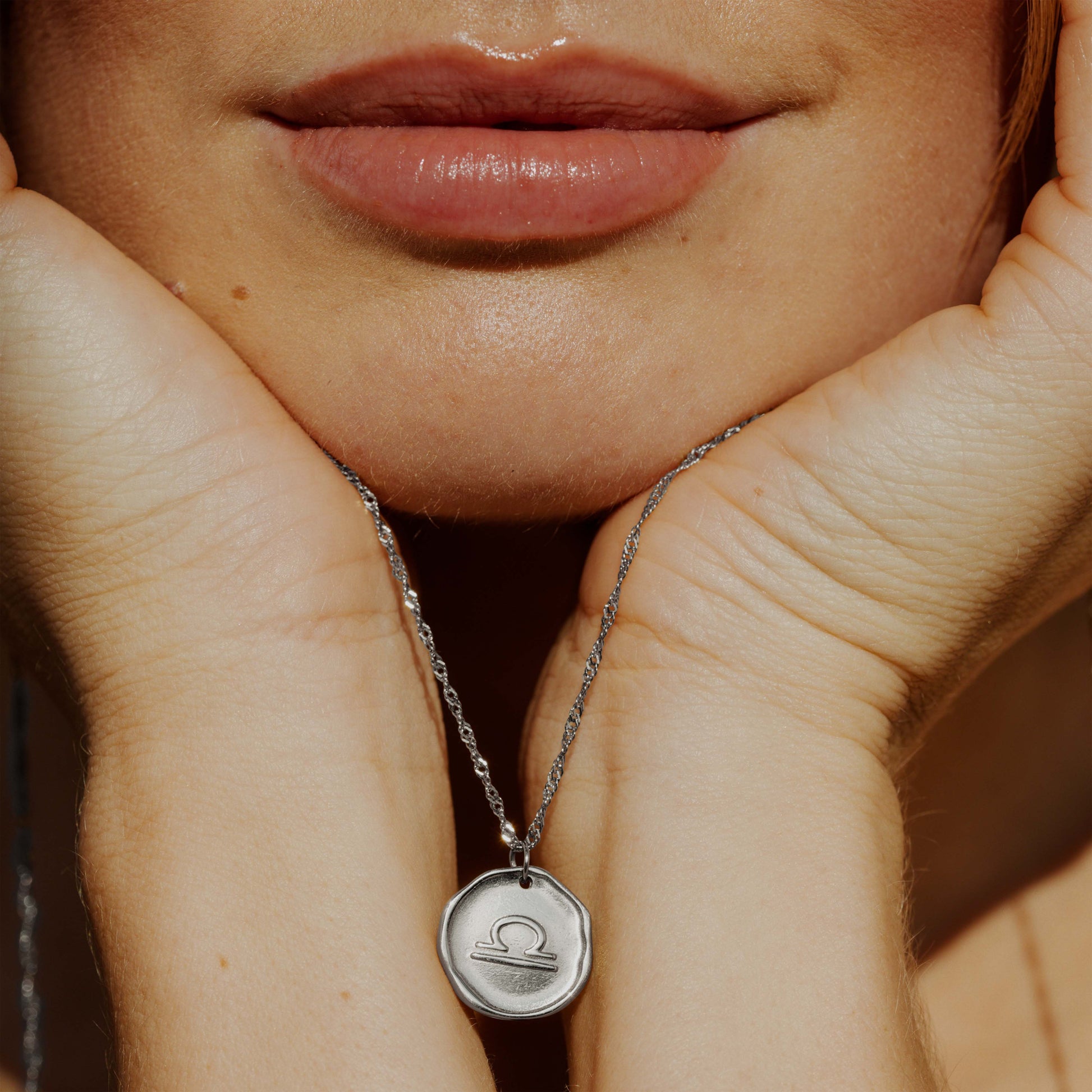 Il ciondolo a doppia faccia del nostro collare 'Libra / Waage' si abbina perfettamente alla catenina di Singapore elegante e delicata e può essere indossato da solo o come parte di un insieme con molti altri gioielli. Ideale per te stesso o come regalo magico e personale per i tuoi cari.